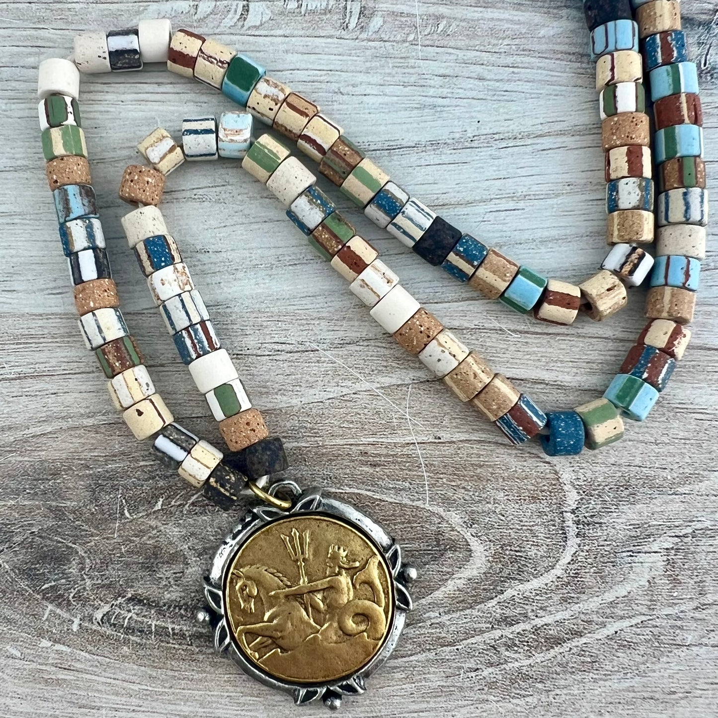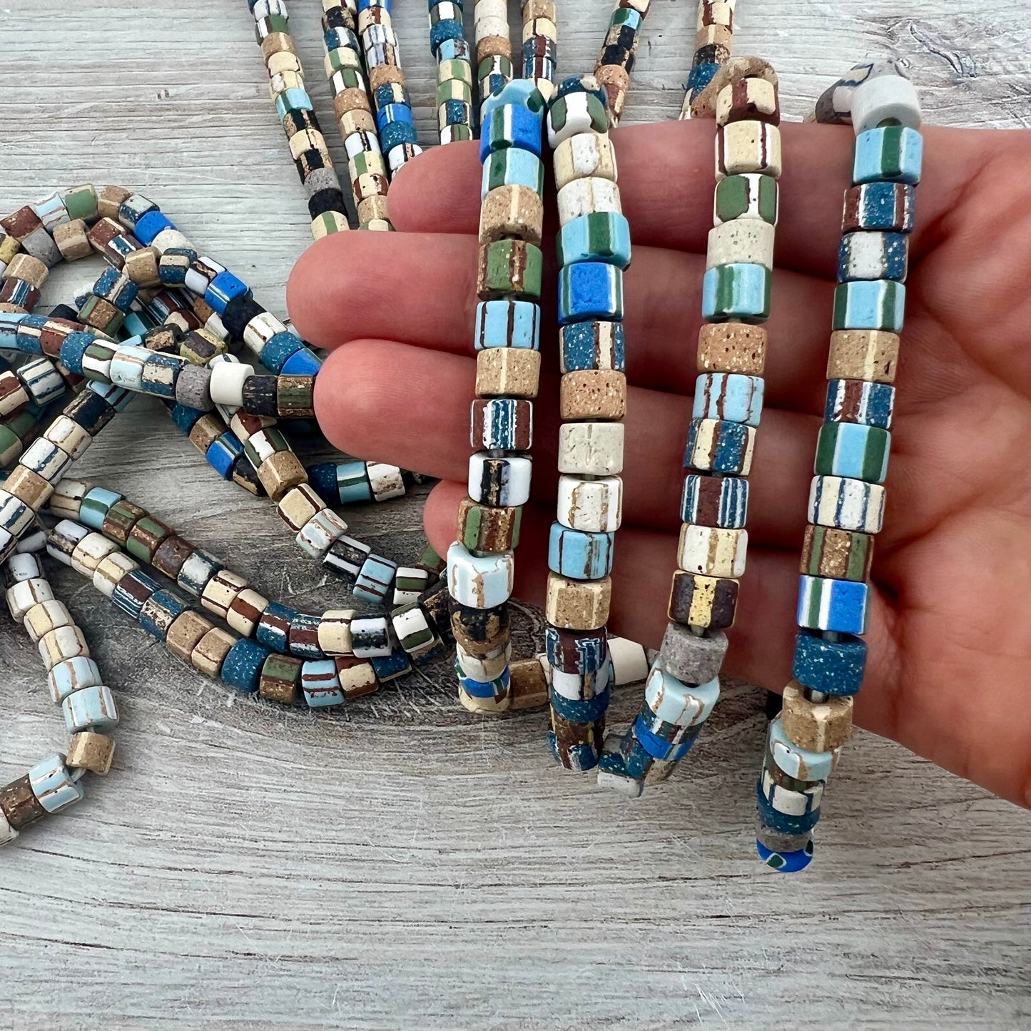 Multi-Colored Ceramic Heishi Beads Strand, Blue, Green, Terracotta, Nerikomi Clay Pattern, BD-0046