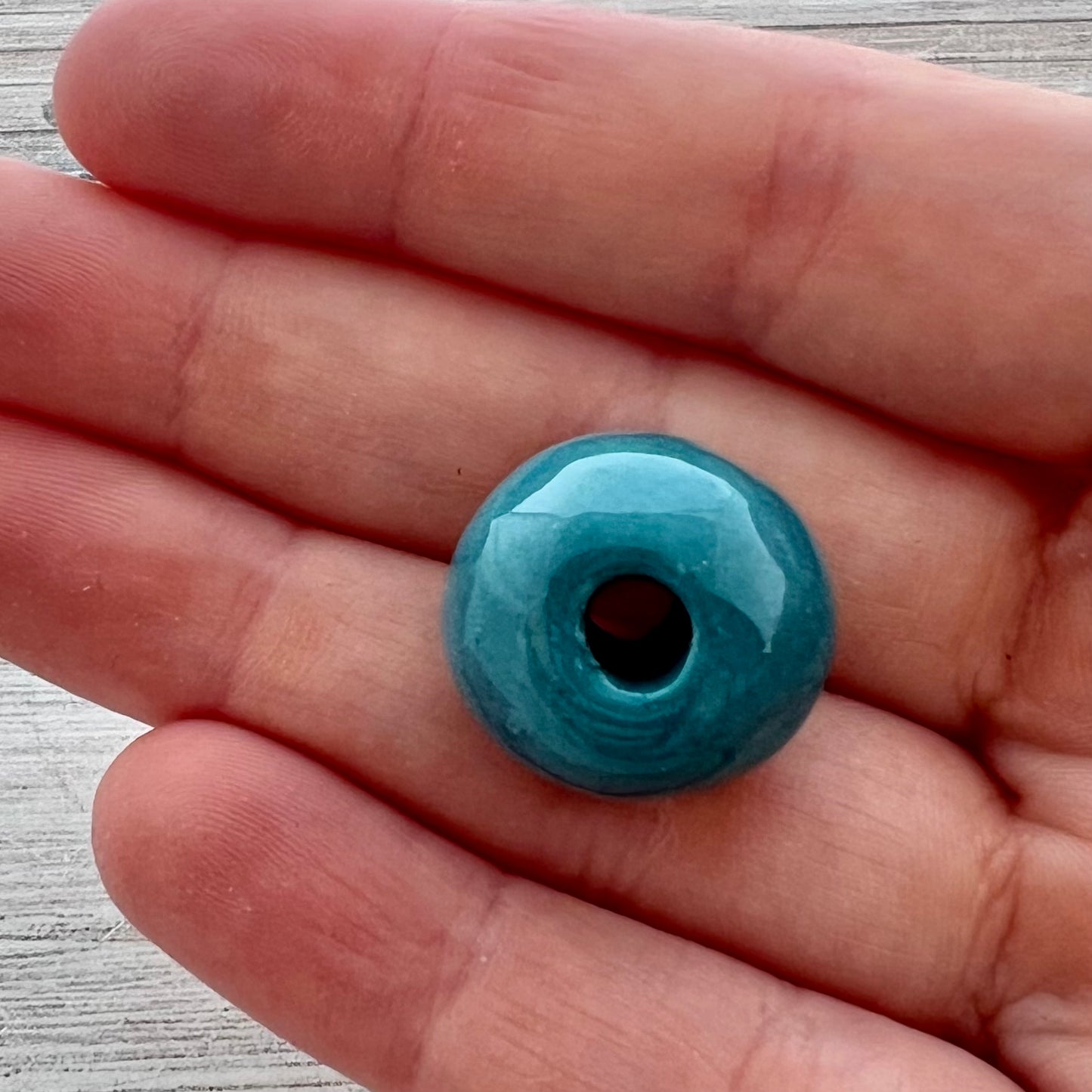 4 Large Blue Teal Ceramic Beads, Glazed Large Bead, Jewelry Finding Making Supplies, BD-0040