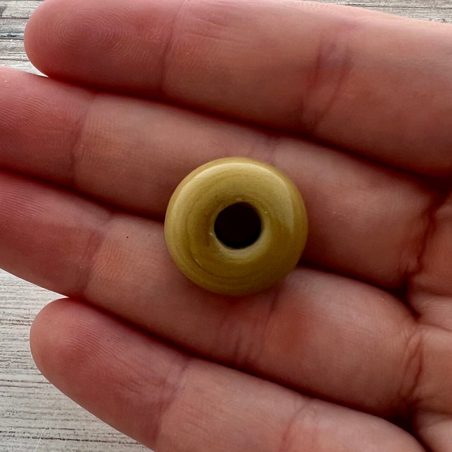 4 Olive Tan Ceramic Beads, Vintage Large Bead, Jewelry Supplies, Jewelry Finding Making, BD-0042