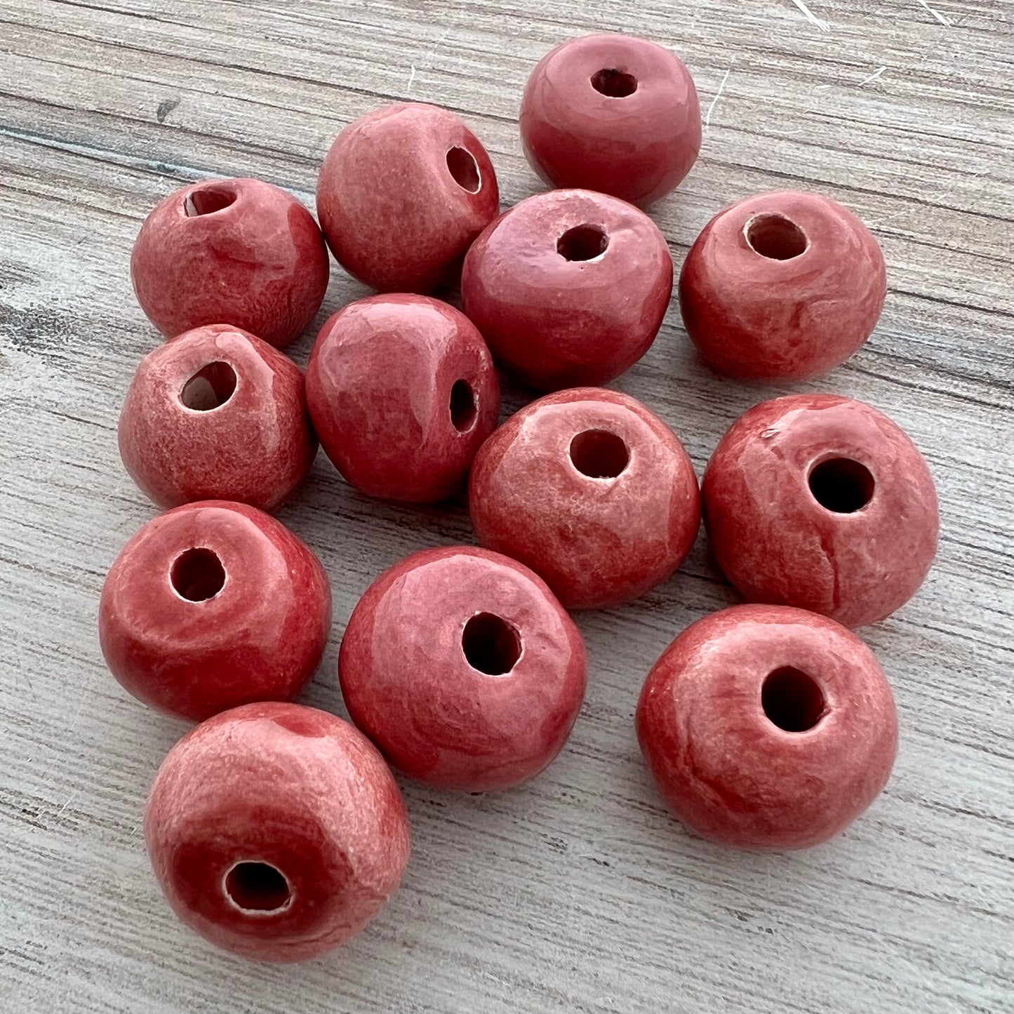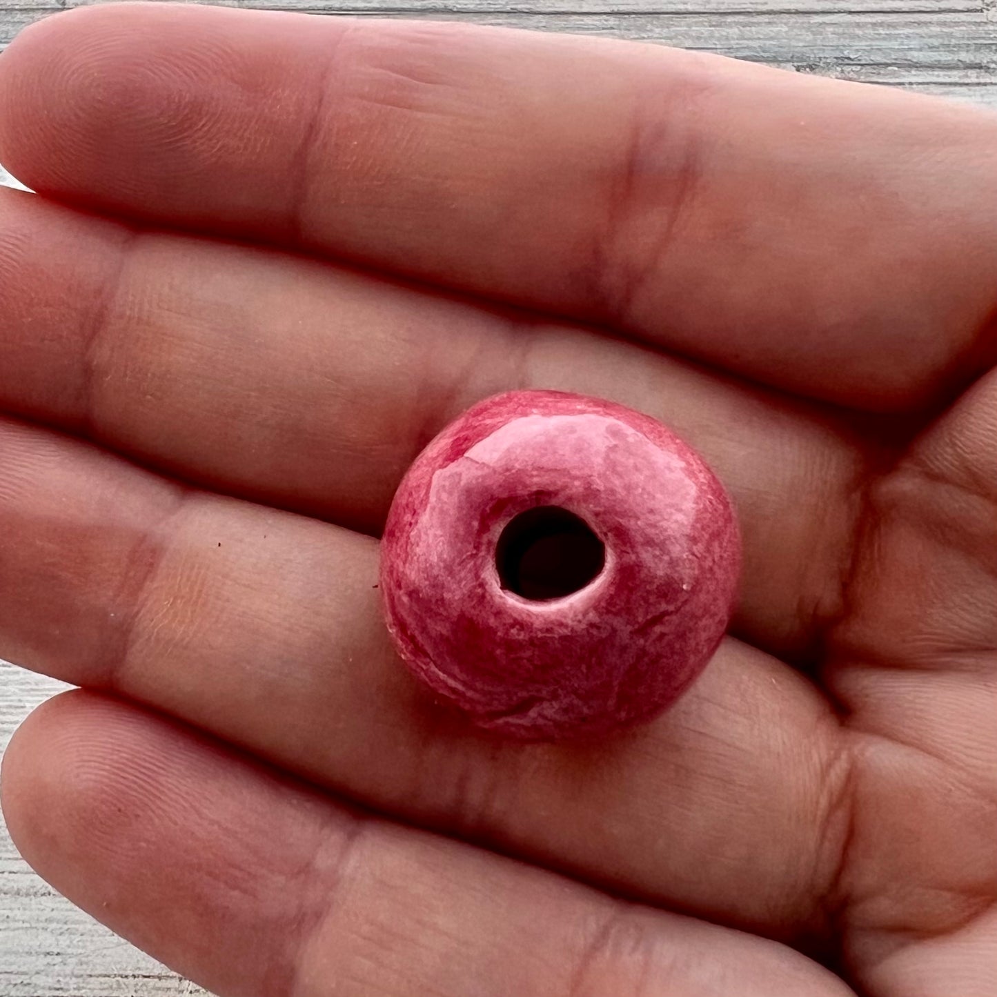 Add 4 Large Pink Ceramic Glazed Beads, Jewelry Finding Making Supplies, BD-0039 to the cart
