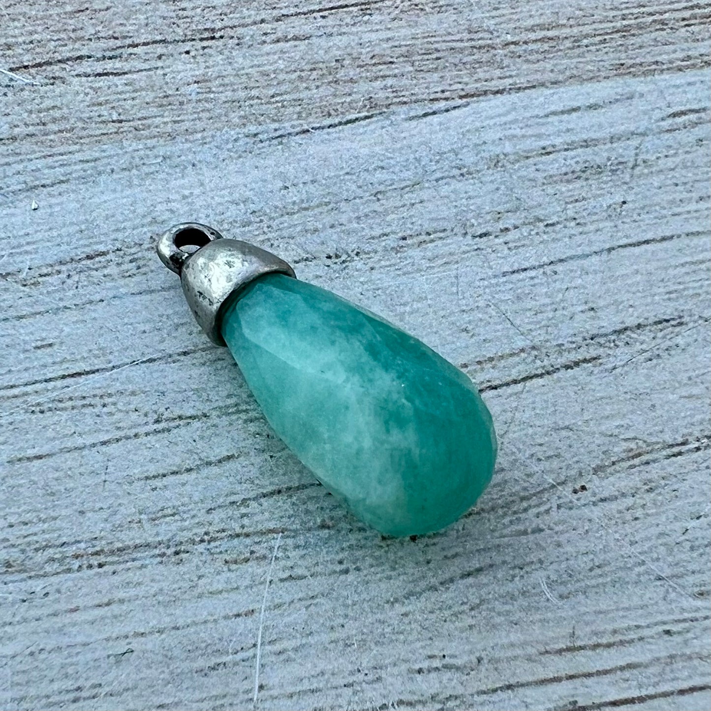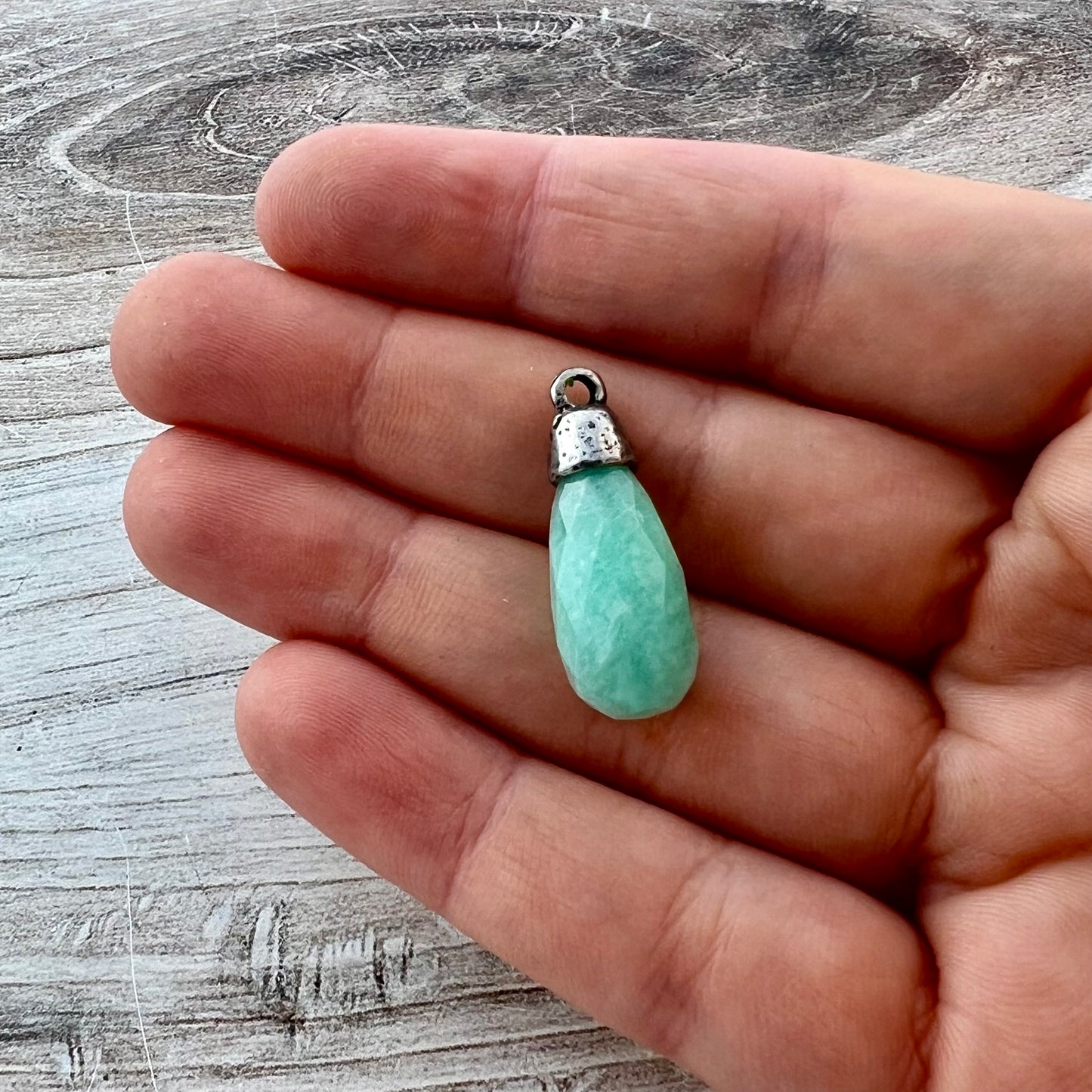Amazonite Faceted Teardrop Briolette Drop Pendant with Silver Pewter Bead Cap, Jewelry Making Artisan Findings, PW-S039