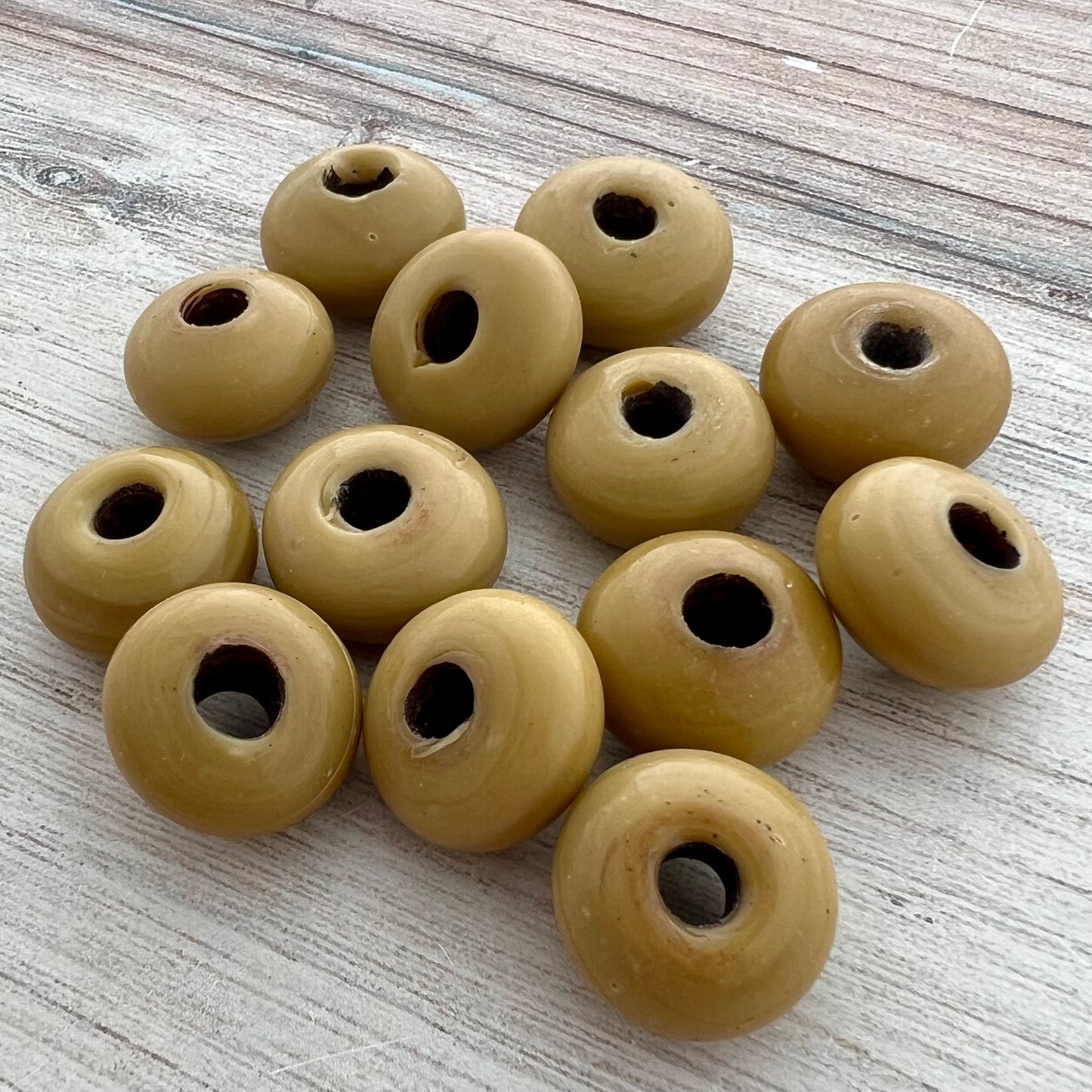 Add 4 Olive Tan Ceramic Beads, Vintage Large Bead, Jewelry Supplies, Jewelry Finding Making, BD-0042 to the cart