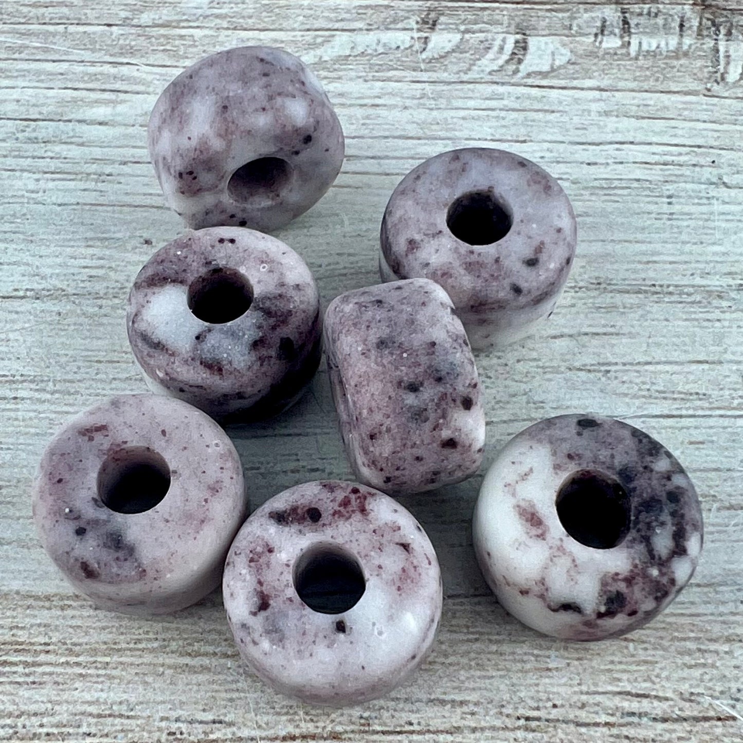 4 Medium Marble Pattern Purple Beads, Ceramic Speckled Tube Bead, Jewelry Making Supplies, Jewelry Findings, BD-0043