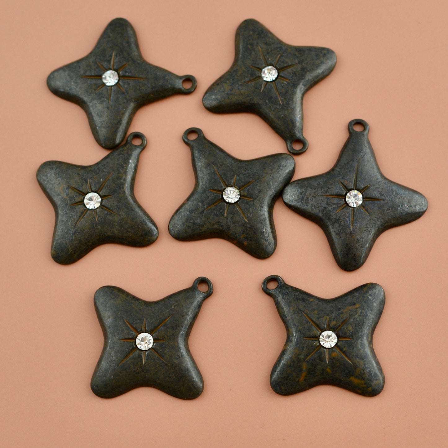 Add Smooth Rounded Twinkling Star Charm with Rhinestone Crystal, Rustic Brown Modern Pendant, Jewelry Making BR-6337 to the cart