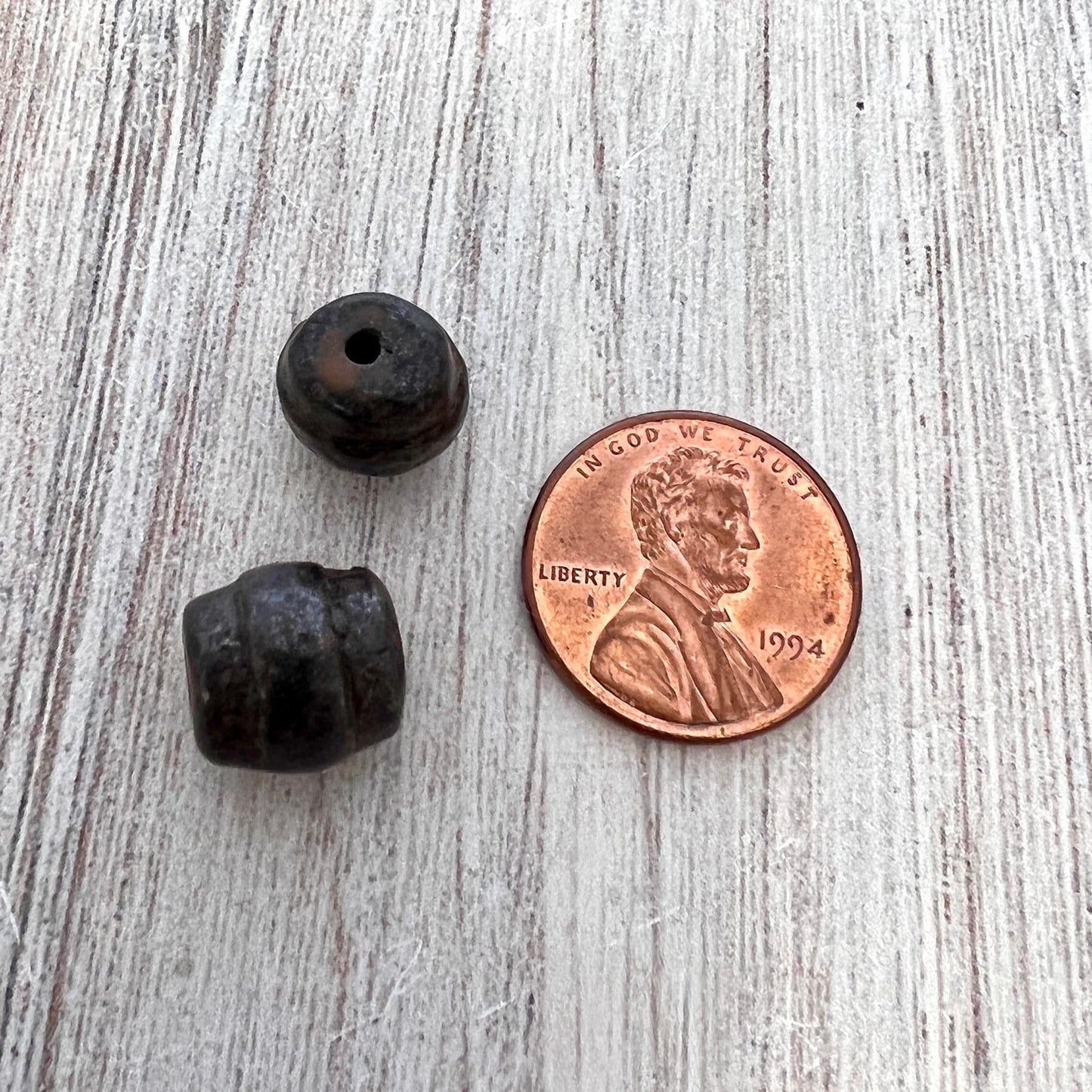 Large Striped Hammered Artisan Barrel Slider Bead, Rustic Brown Antiqued Finding, Jewelry Components Supplies, BR-6216