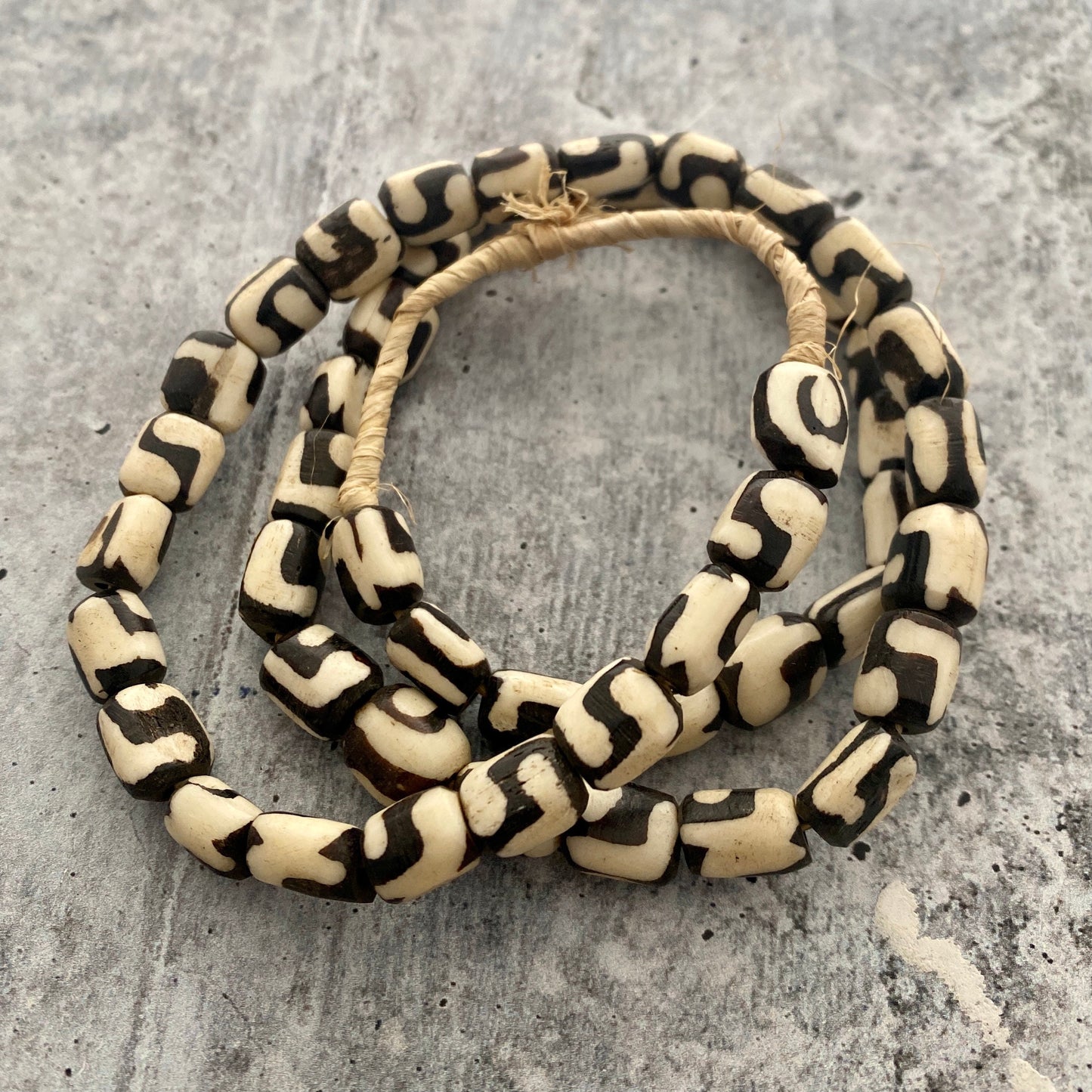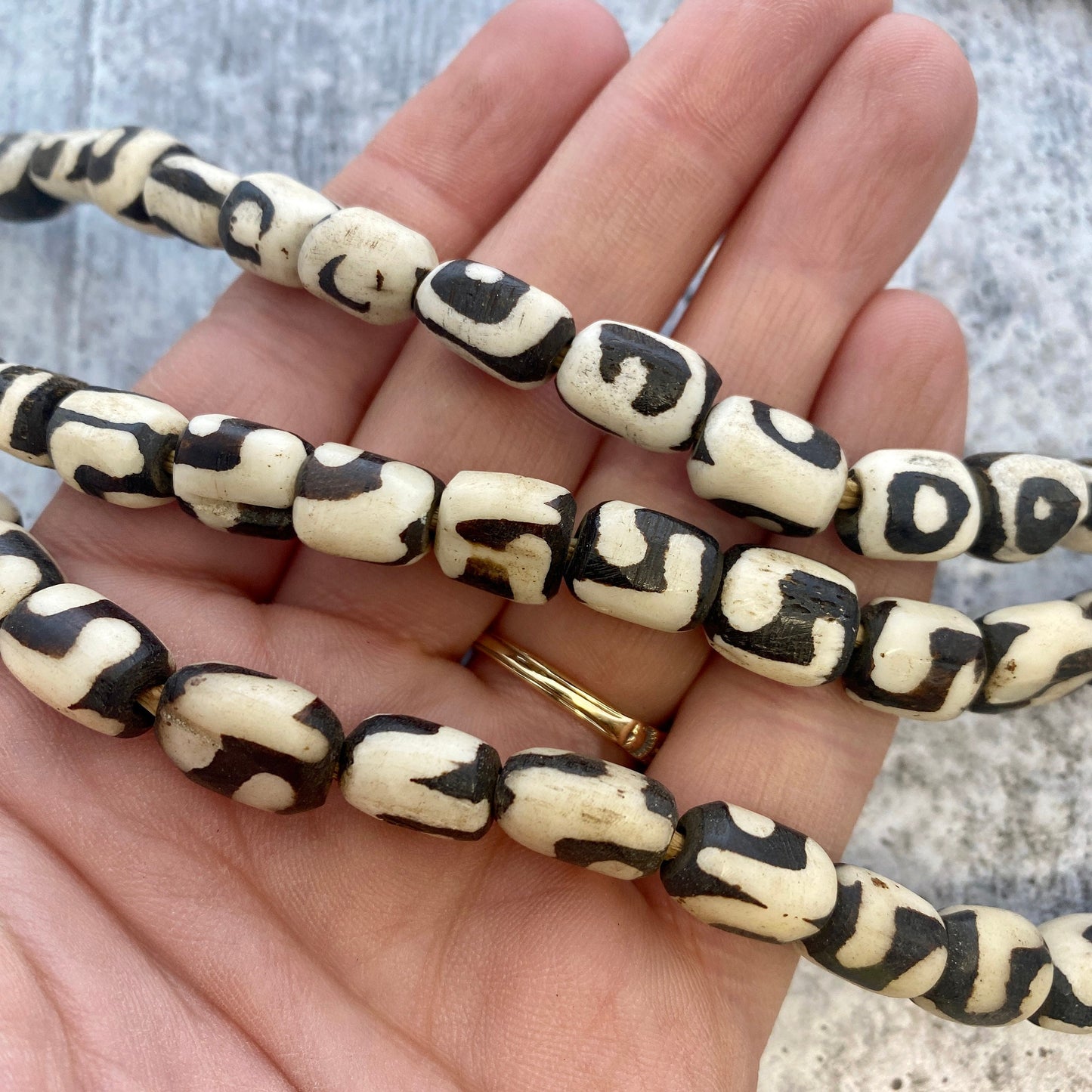 Full Strand Batik African Bone Beads, Black and White, 9x12mm, BD-0011