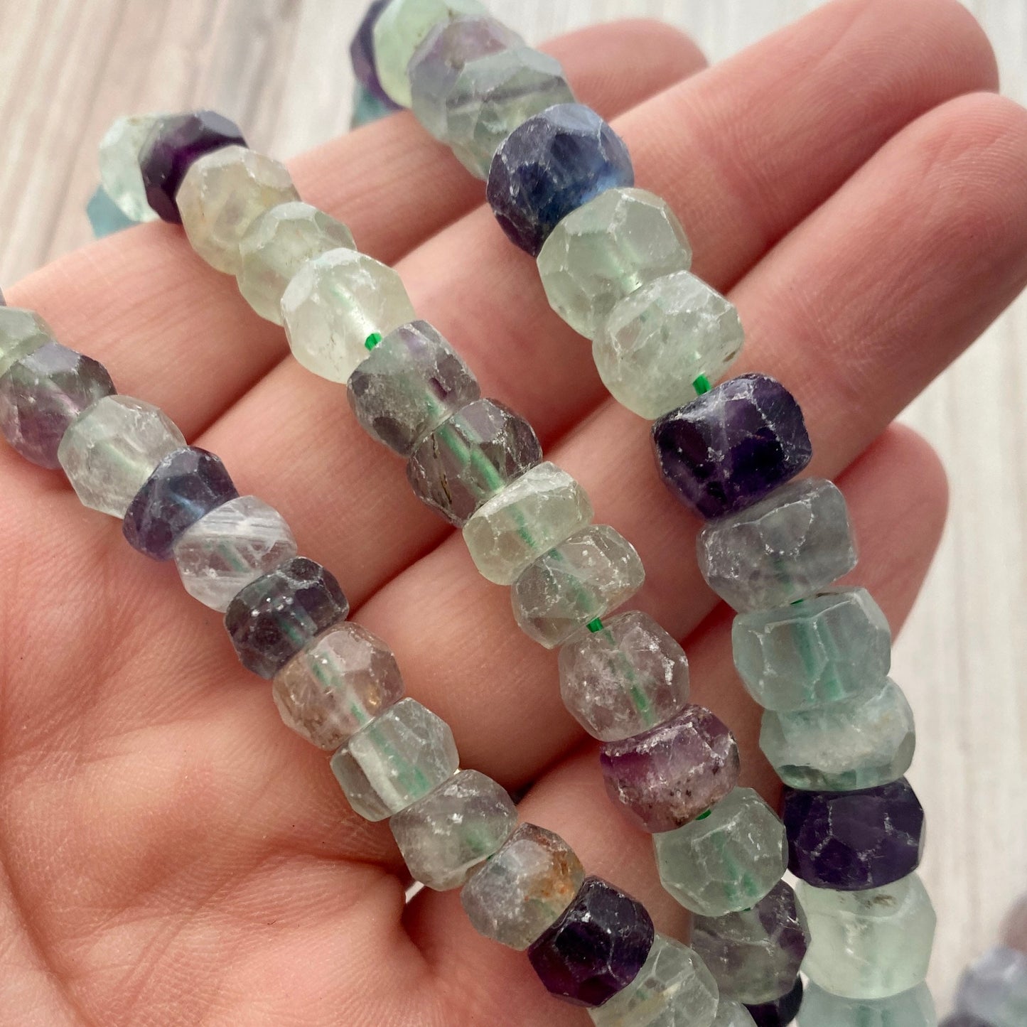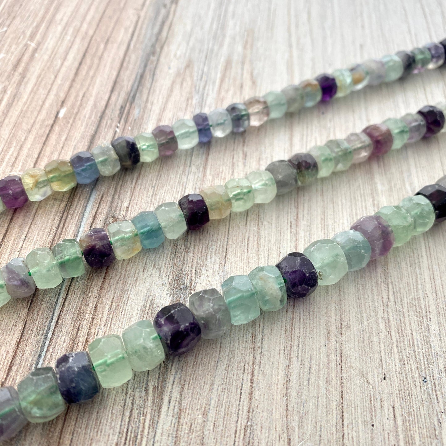 Flourite Faceted Rondelles, Rainbow Green, Purple Various Sizes, BD-0013, BD-0014, BD-0015