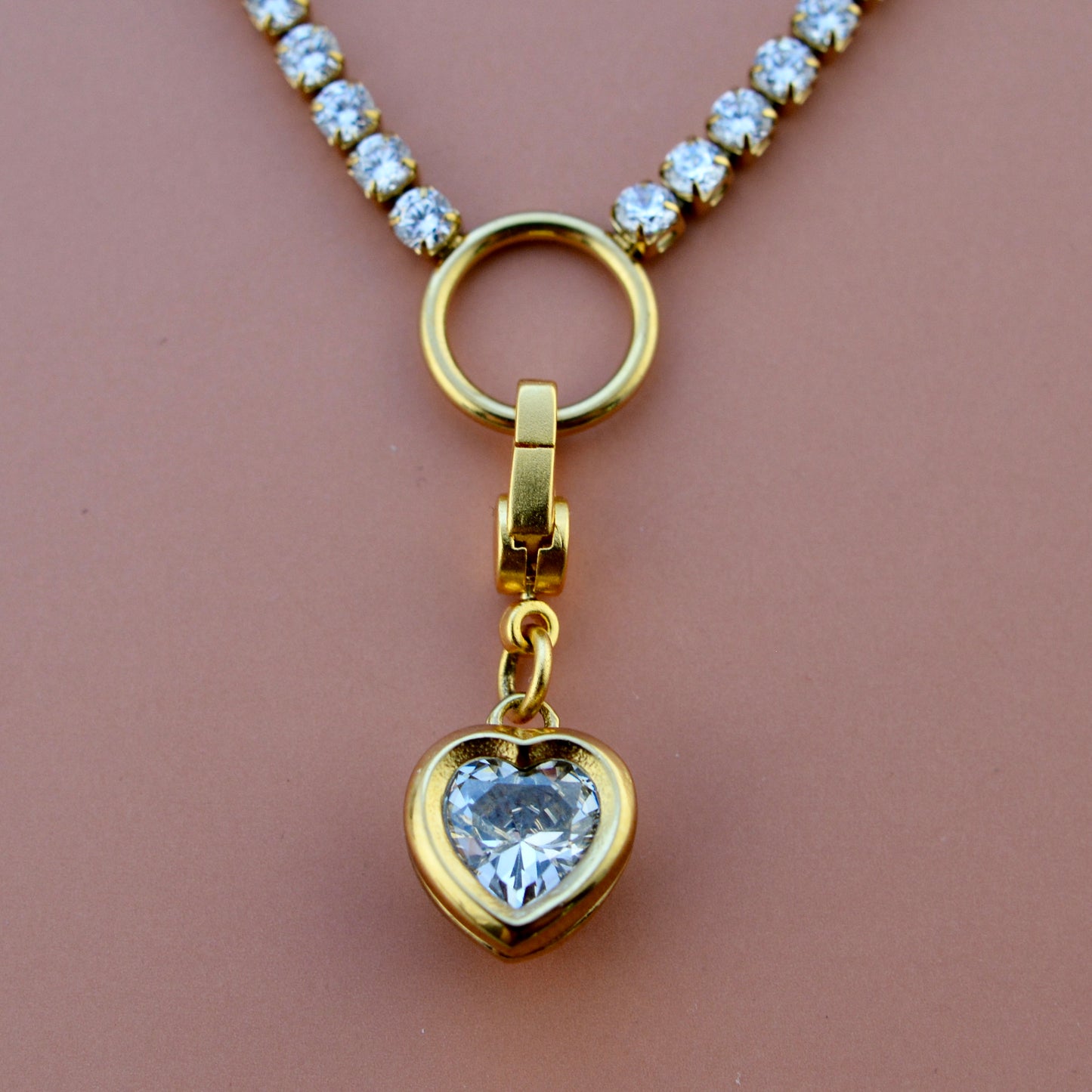 Add Medium Gold Double Sided Rhinestone Heart Pendant, Jewelry Making Supplies, Components GL-6379 to the cart