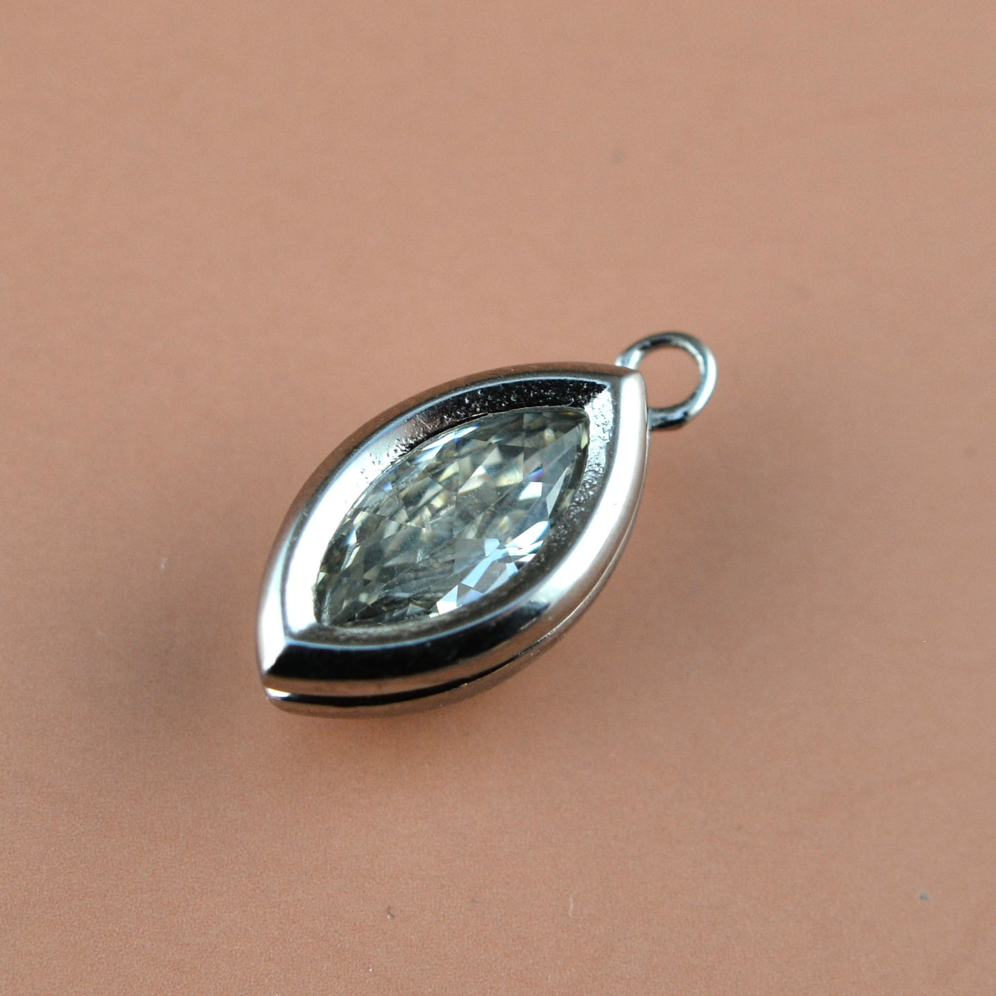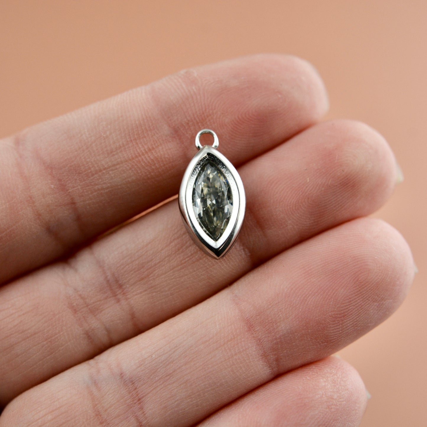 Crystal Clear Navette Shape CZ Charm, Small Sparkling Silver Pendant, Rhinestone, Jewelry Making Artisan Findings, SL-6383
