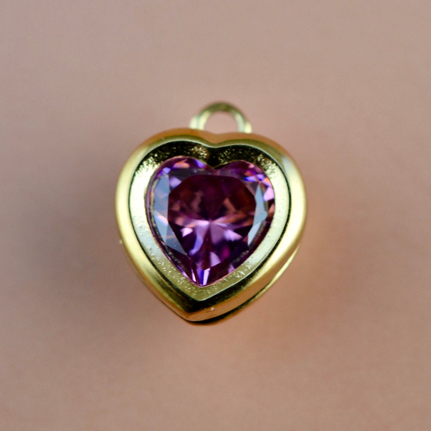 Add Pink Crystal Heart Shape CZ Charm, Small Sparkling Gold Pendant, Rhinestone, Jewelry Making Artisan Findings, GL-6385 to the cart