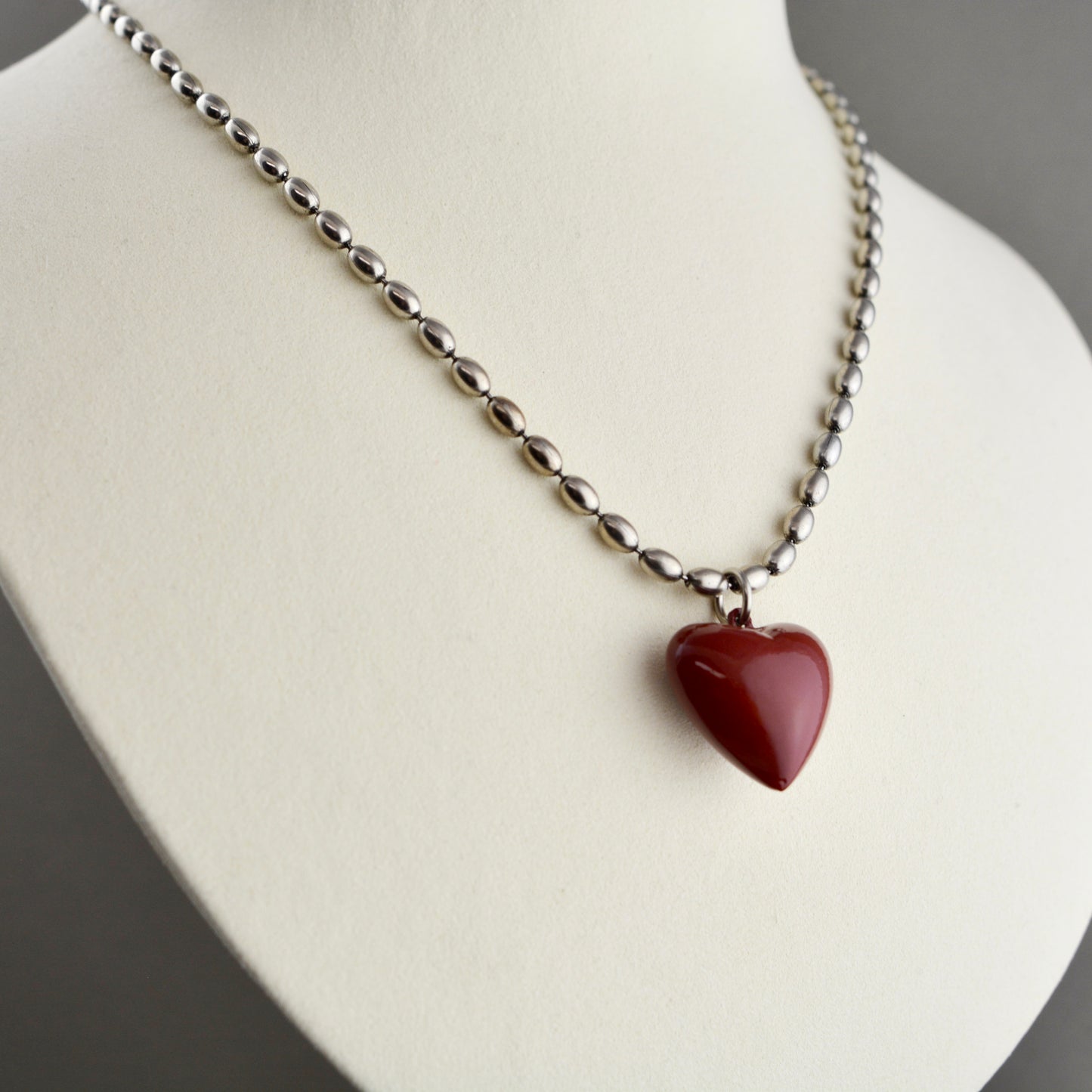 Vintage Glossy Red Enamel 3D Puffy Heart Charm, Jewelry Making Pendant, MM-0001