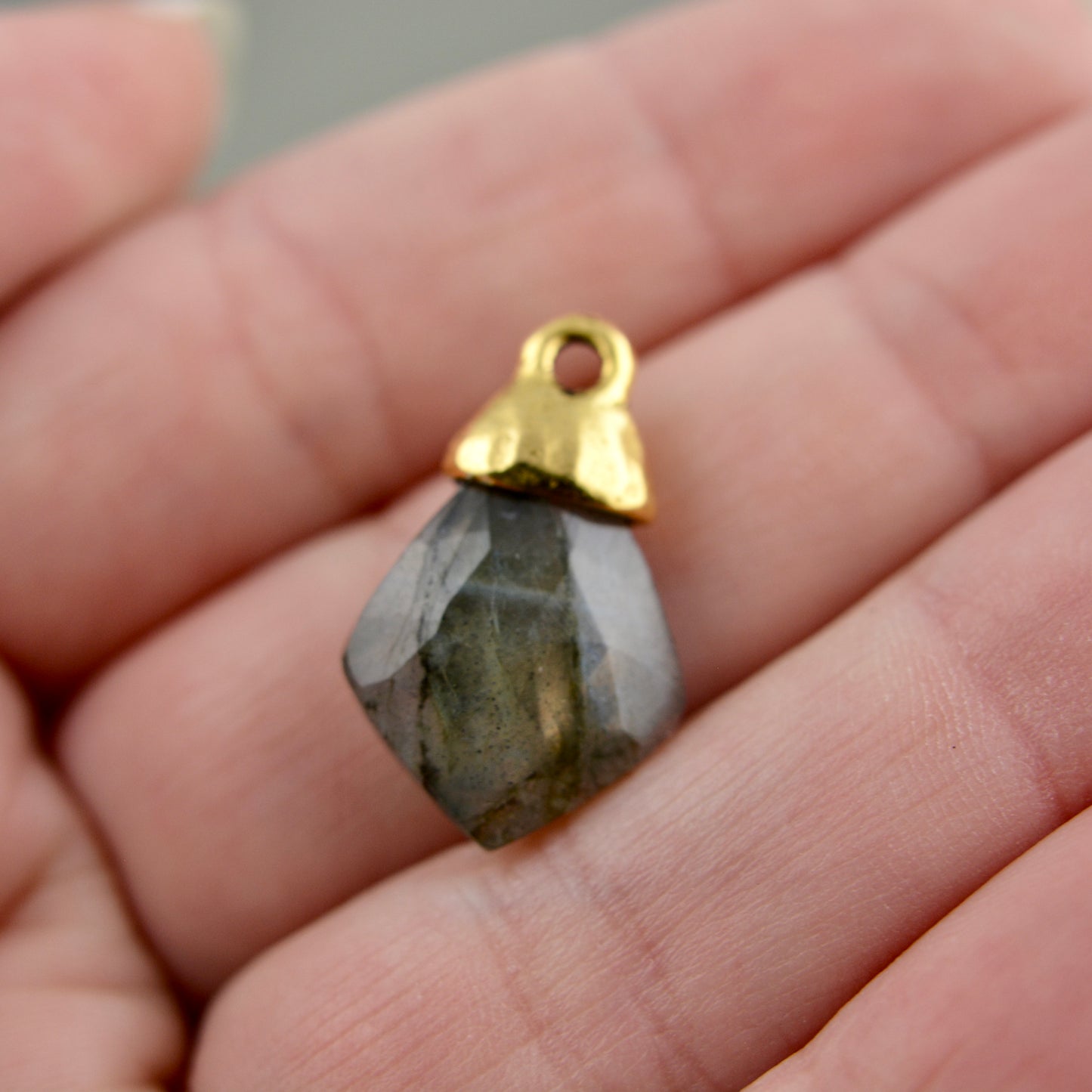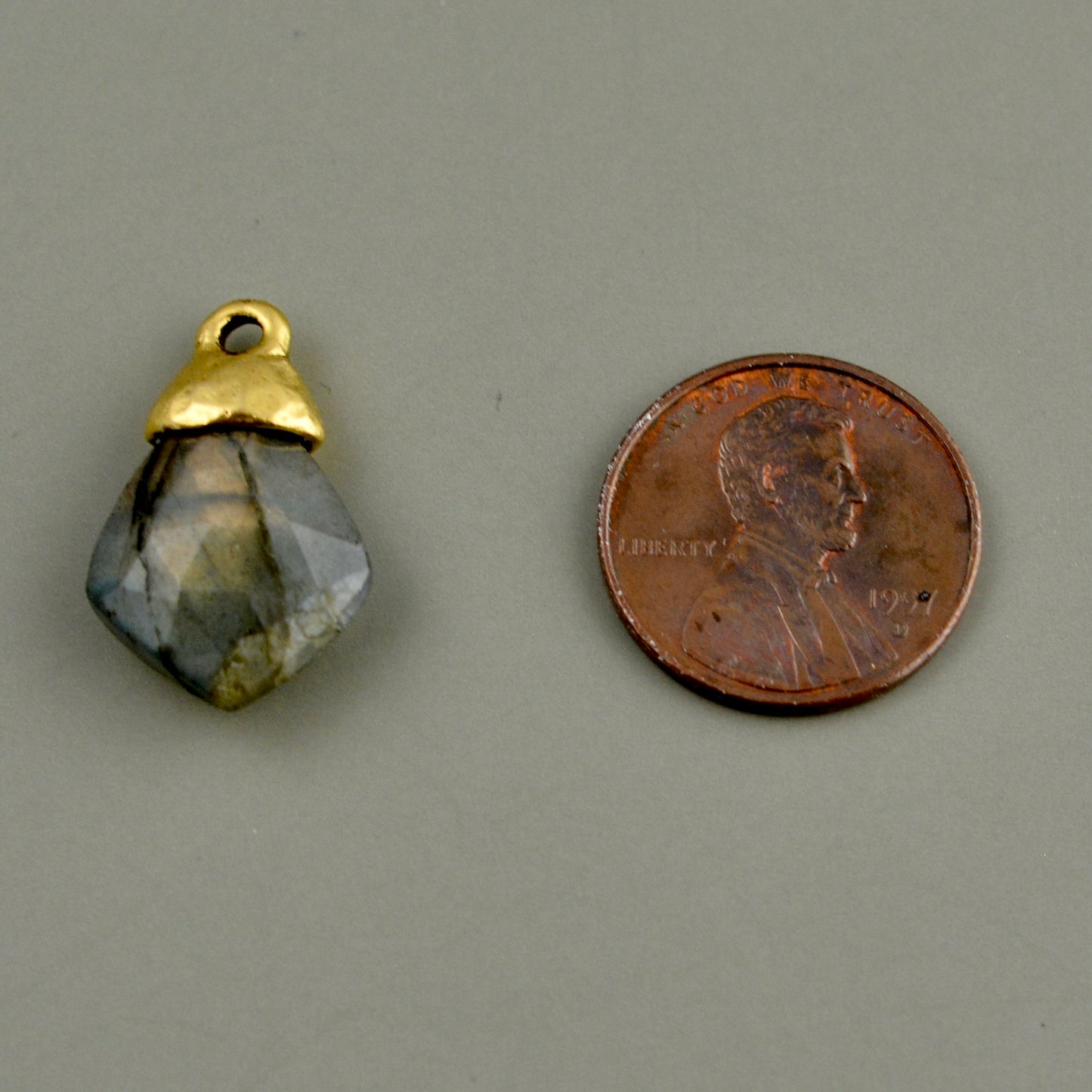 Add Labradorite Diamond Shape Drop Pendant with Antique Gold Bead Cap, Gemstone, Jewelry Making Artisan Findings, GL-S055 to the cart