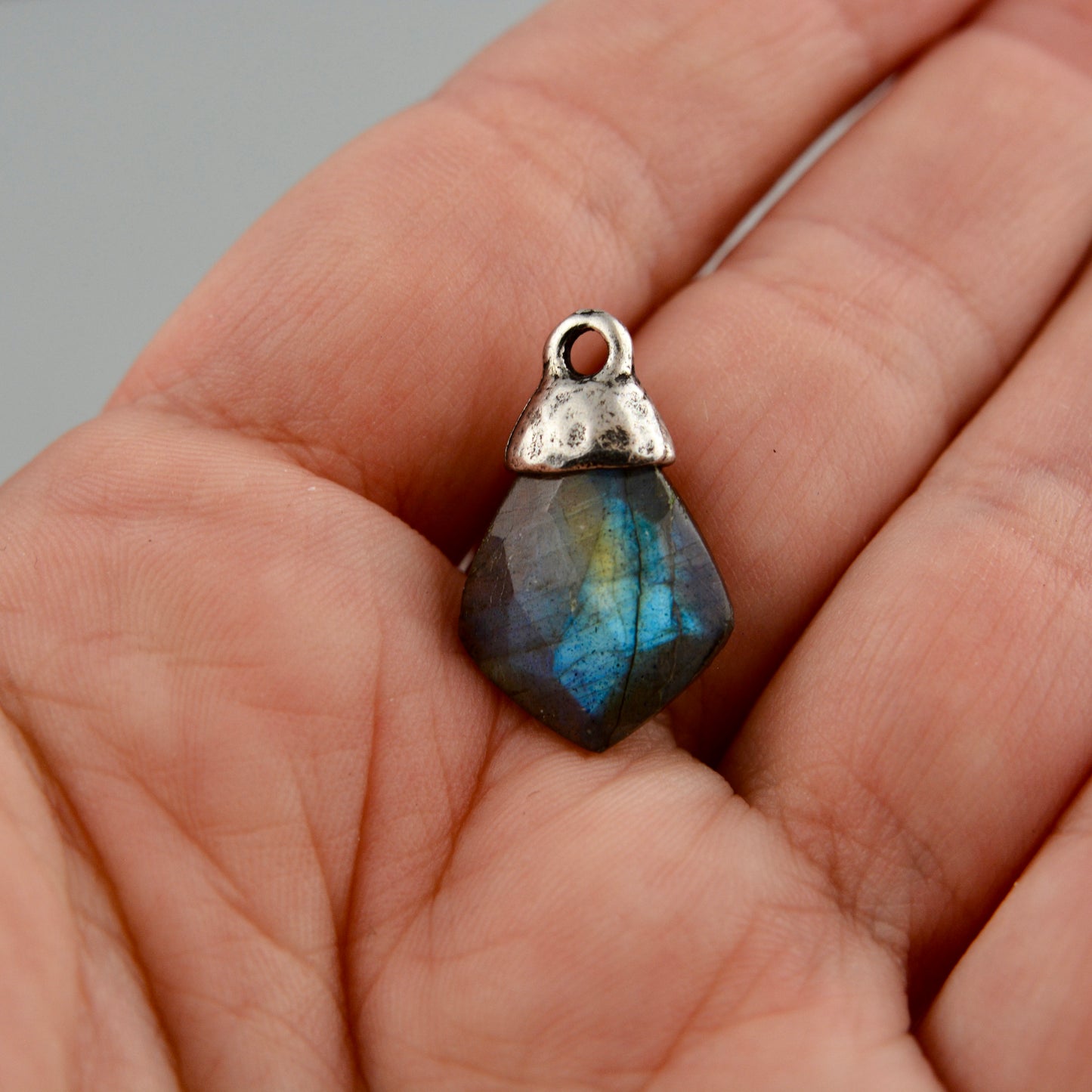 Add Labradorite Diamond Shape Drop Pendant with Antique Silver Bead Cap, Gemstone, Jewelry Making Artisan Findings, PW-S055 to the cart
