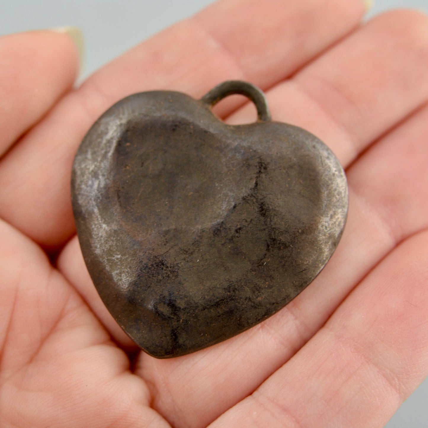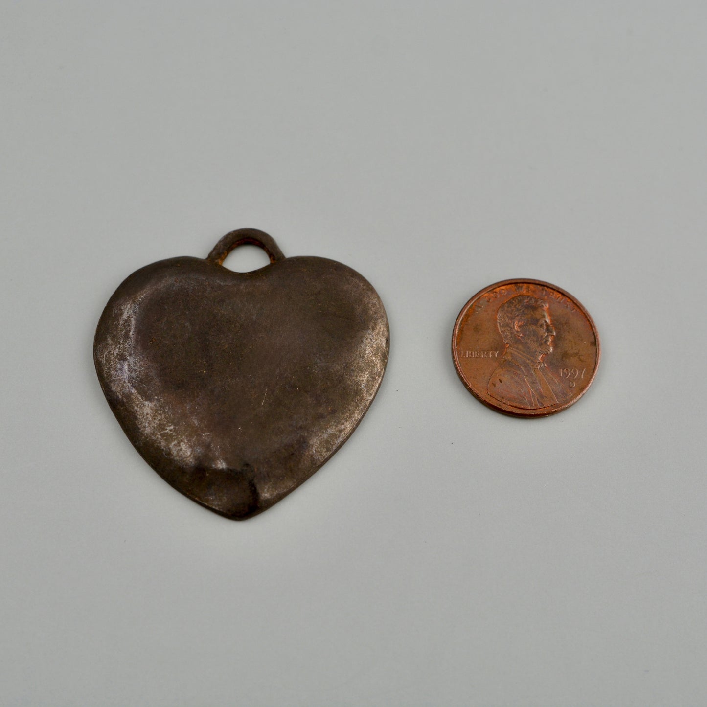 Large Rustic Brown Heart Pendant, Vintage Smooth Wavy Heart Charm, Jewelry Making Supplies, Components, BR-6317