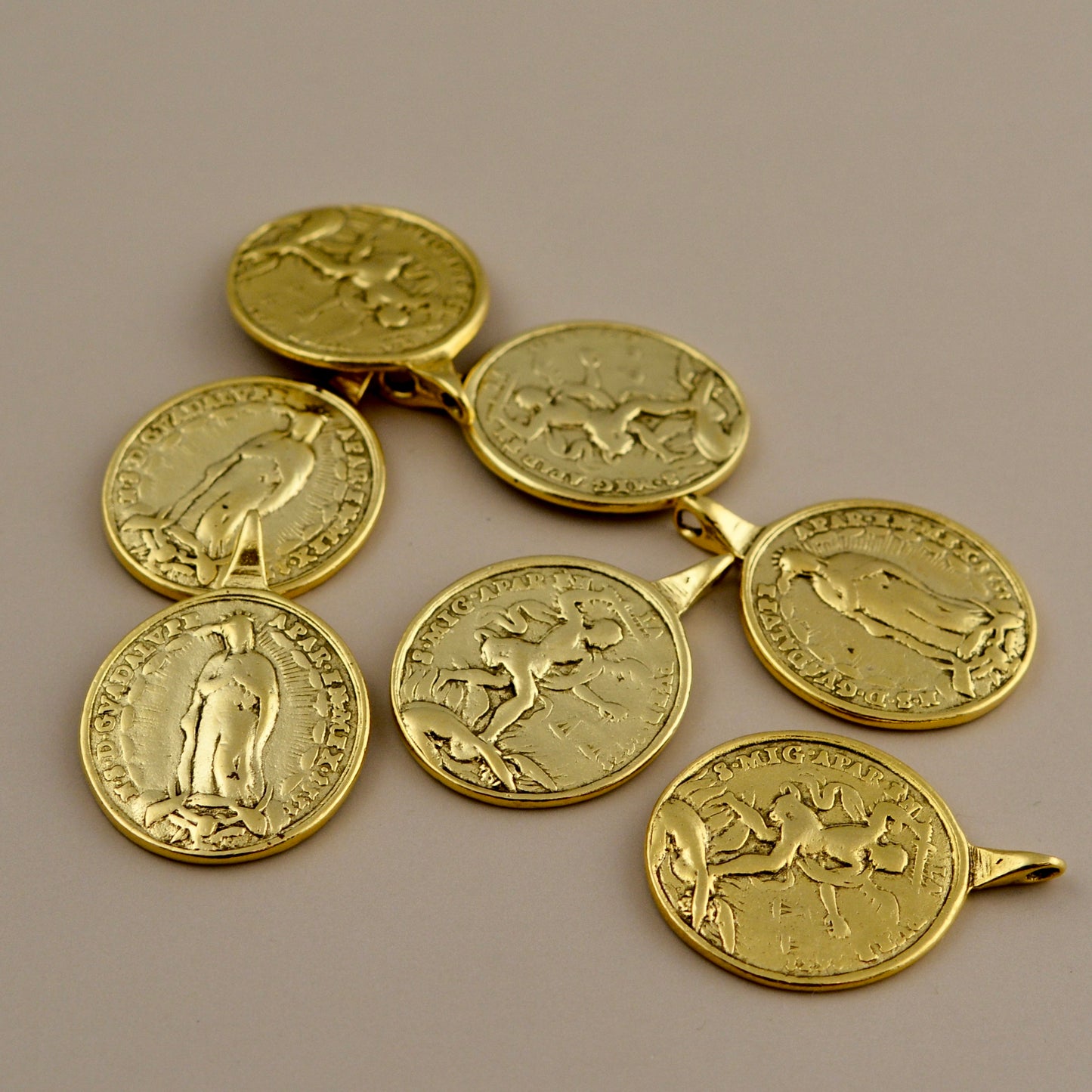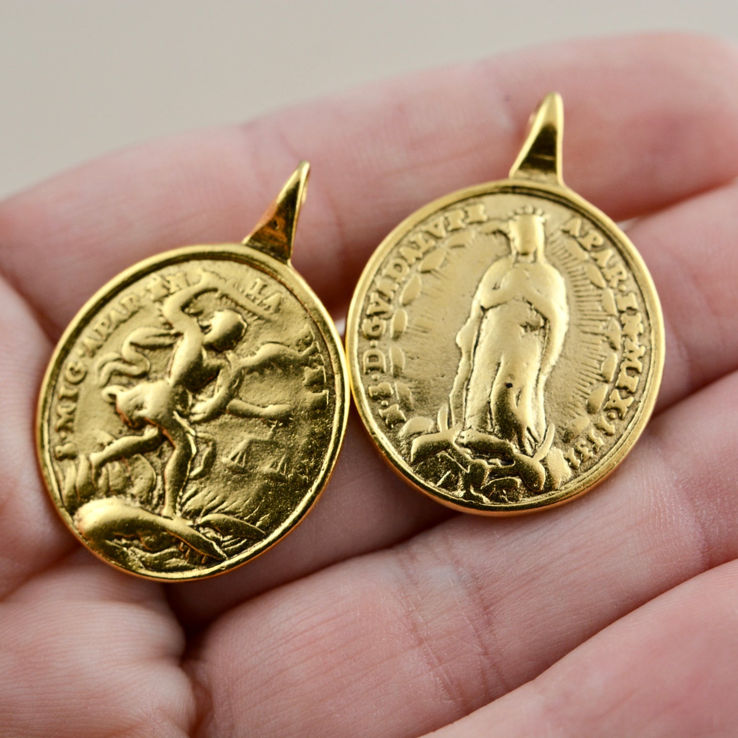 Archangel St. Michael and Blessed Mother Mary with Bail, Catholic Medal, Antiqued Gold Religious Pendant Jewelry, GL-6381