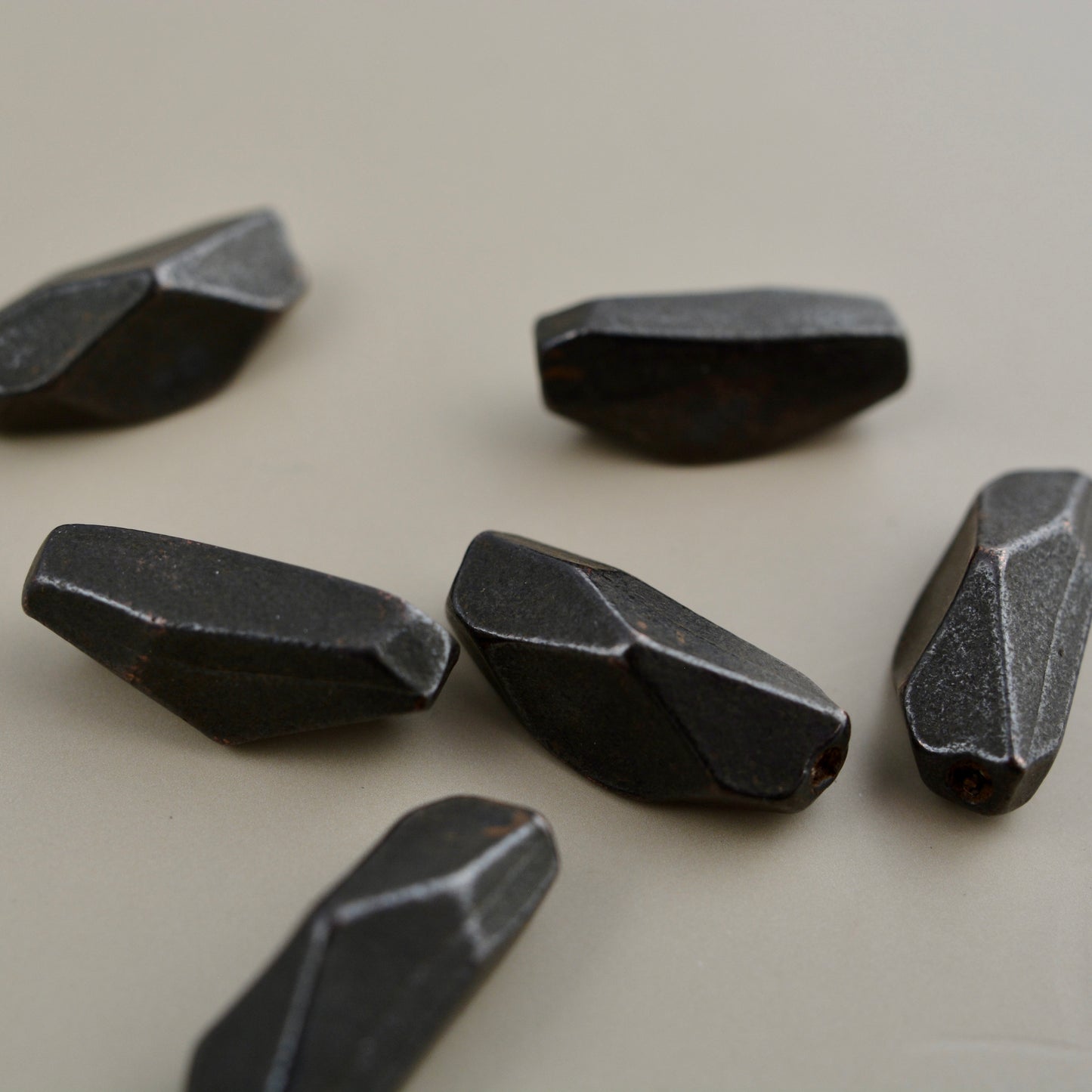 Add One Geometric Faceted Bead, Long Artisan Spacer Tube Bead, Rustic Brown Finding, Jewelry Components Supplies, BR-6335 to the cart