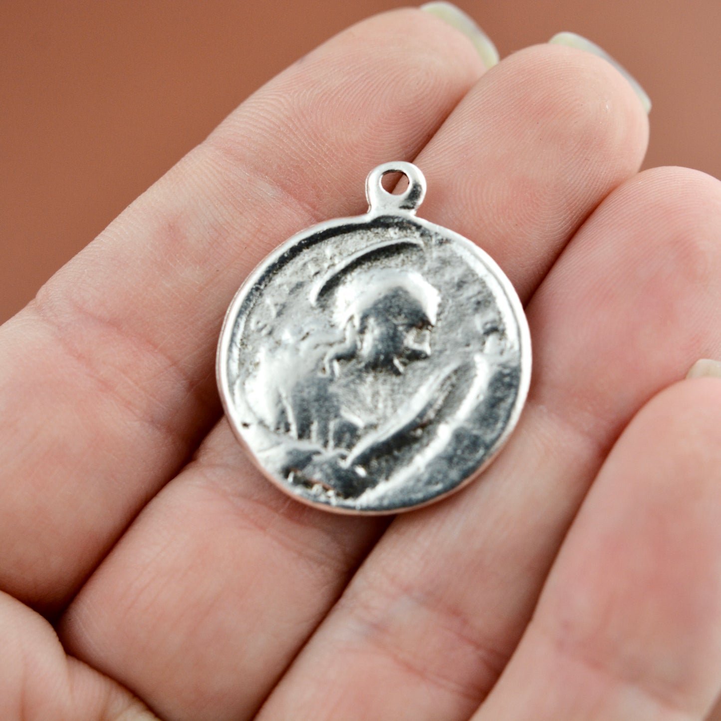 Archangel St. Michael and St. Barbara, Catholic Medal, Antiqued Silver Religious Pendant Jewelry, SL-6290