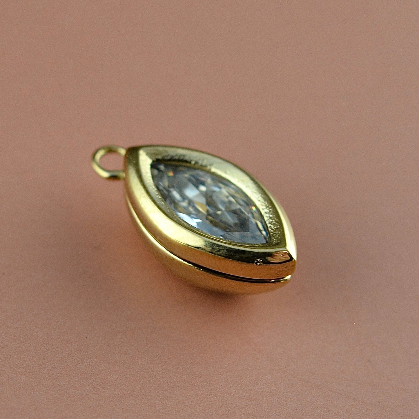 Crystal Clear Navette Shape CZ Charm, Small Sparkling Gold Pendant, Rhinestone, Jewelry Making Artisan Findings, GL-6383