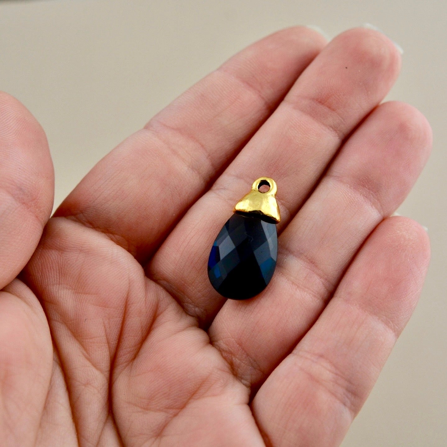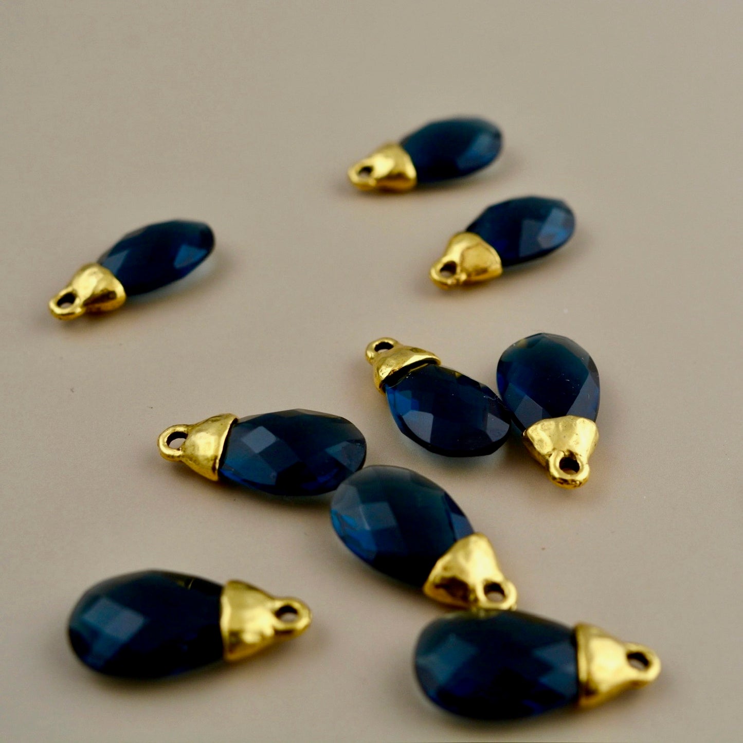 London Topaz Hydrolyzed Quartz Pear Faceted Briolette Drop Pendant with Antique Gold Bead Cap, Gemstone, Jewelry Making Artisan Findings, GL-S054
