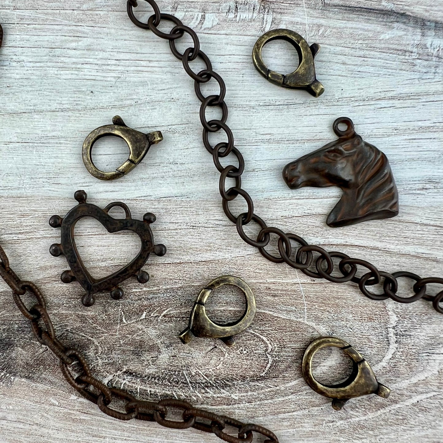NOTE: This is brass that has been antiqued. It is different than our Rustic Brown finish, but we think that it pairs really well with the rustic brown findings.