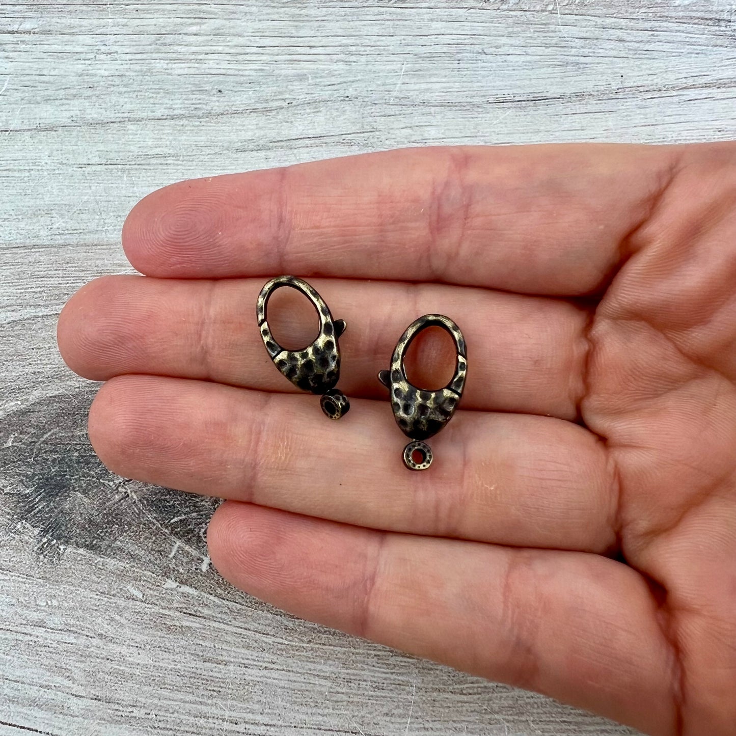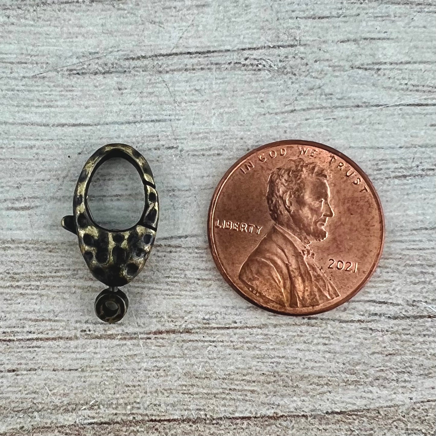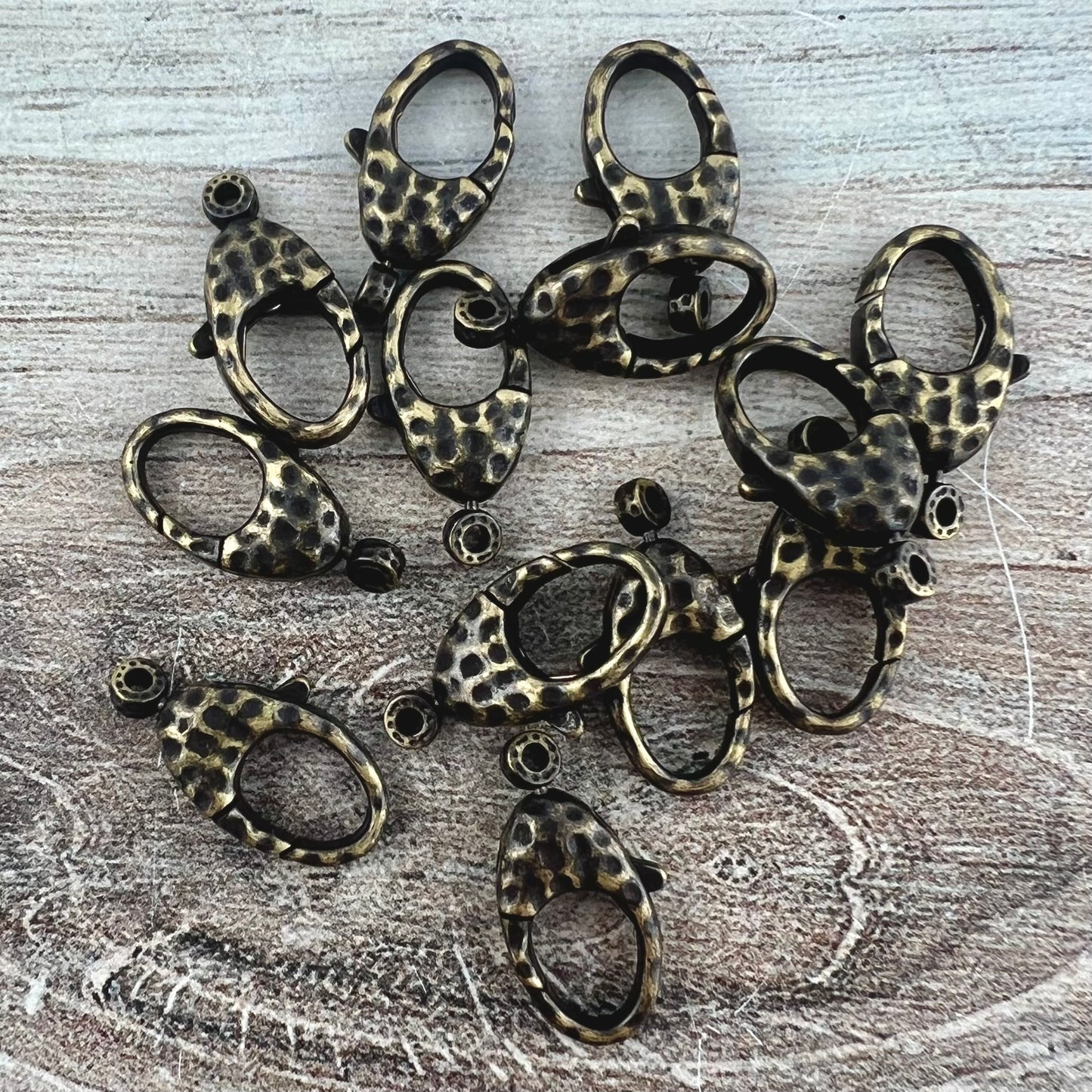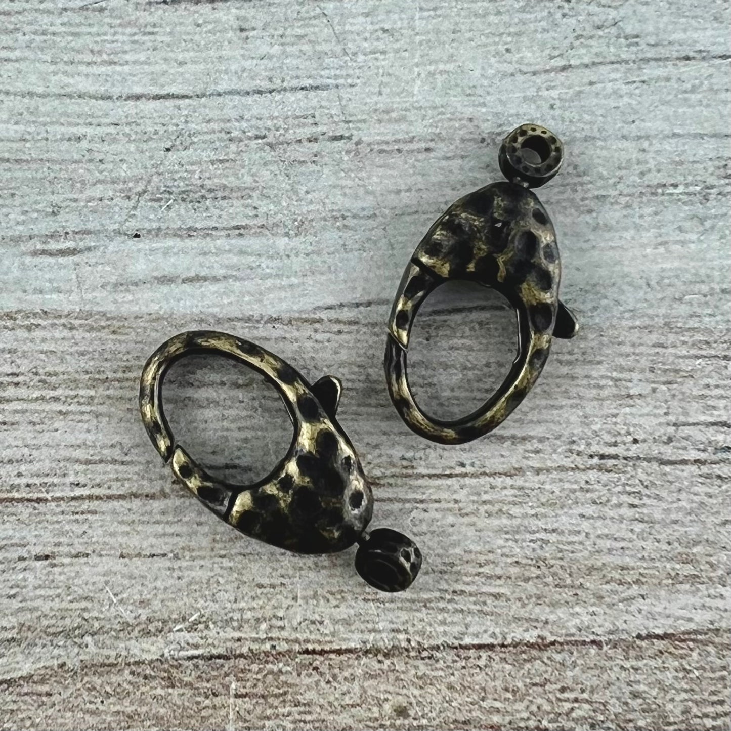 This medium sized hammered lobster clasp is perfect for a variety of jewelry pieces, such as bracelets and necklaces. The attached ring swivels. You receive two.