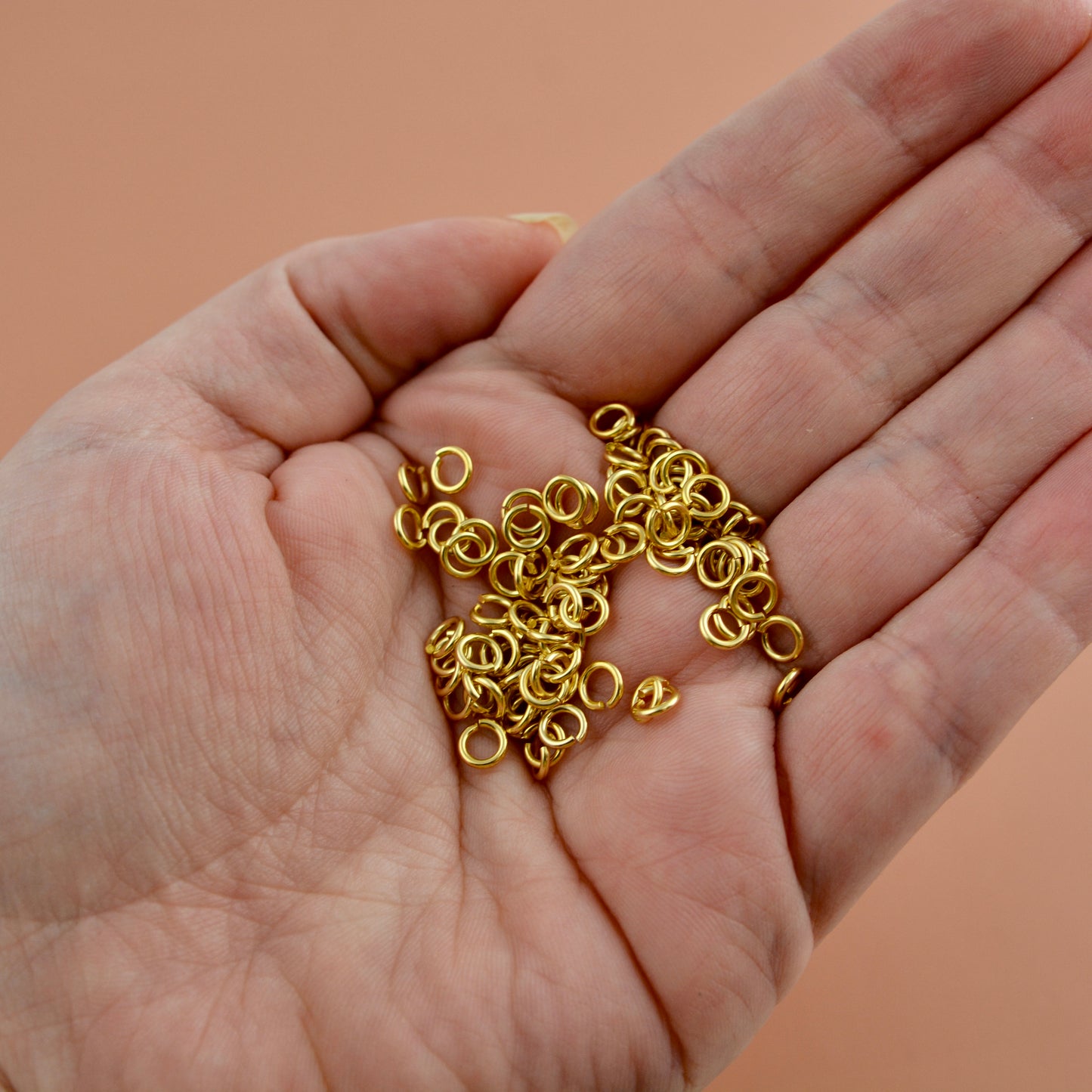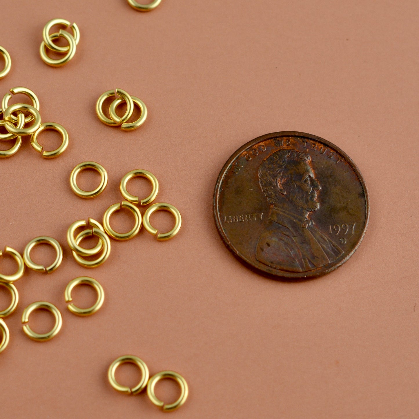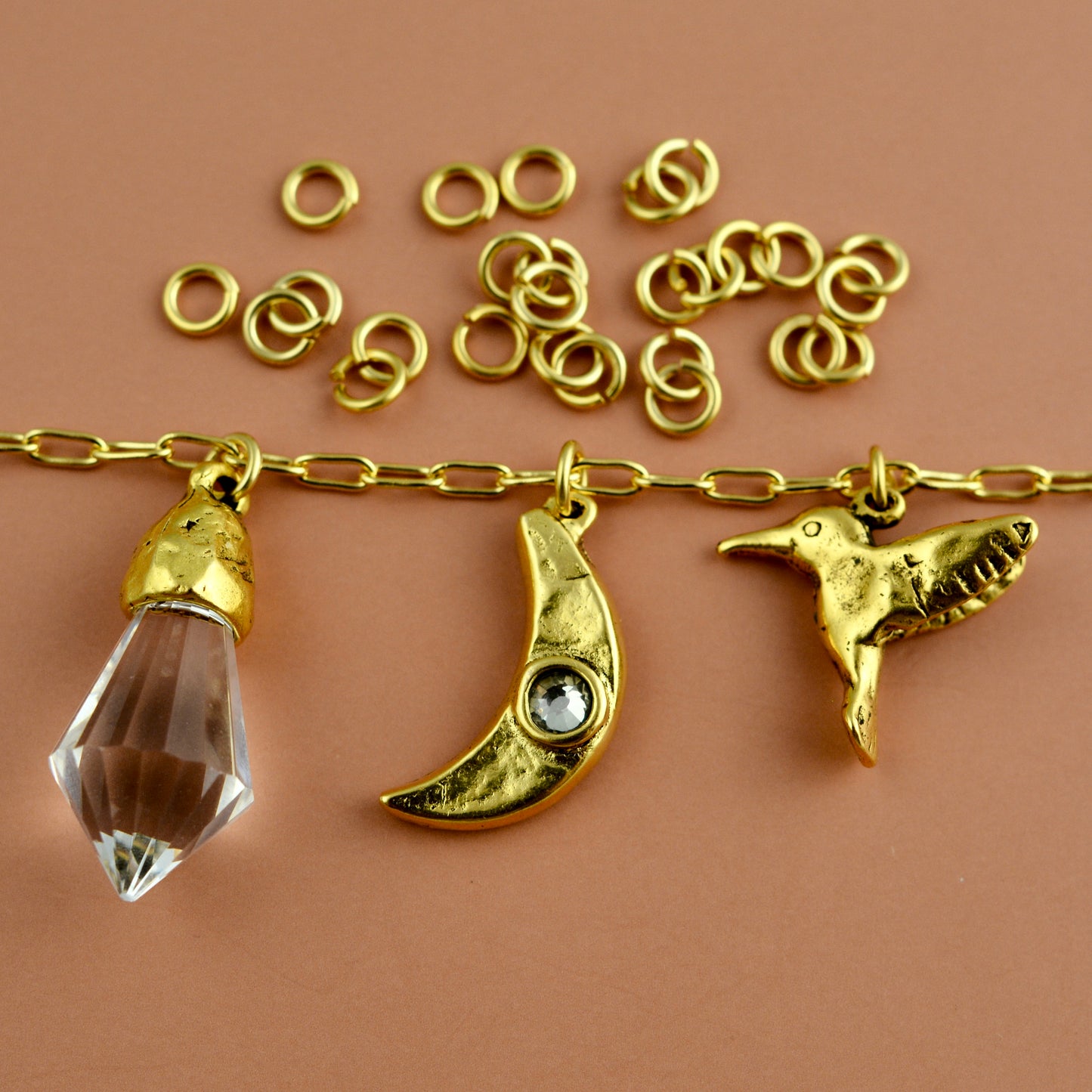 Craft stunning jewelry pieces with these versatile jump rings, expertly crafted from solid brass and finished in gleaming gold. Each set of 50 rings measures 5mm, offering the perfect size for connecting components and creating professional-quality designs. Proudly manufactured in America, these antiqued jump rings bring durability and timeless elegance to your creative projects.