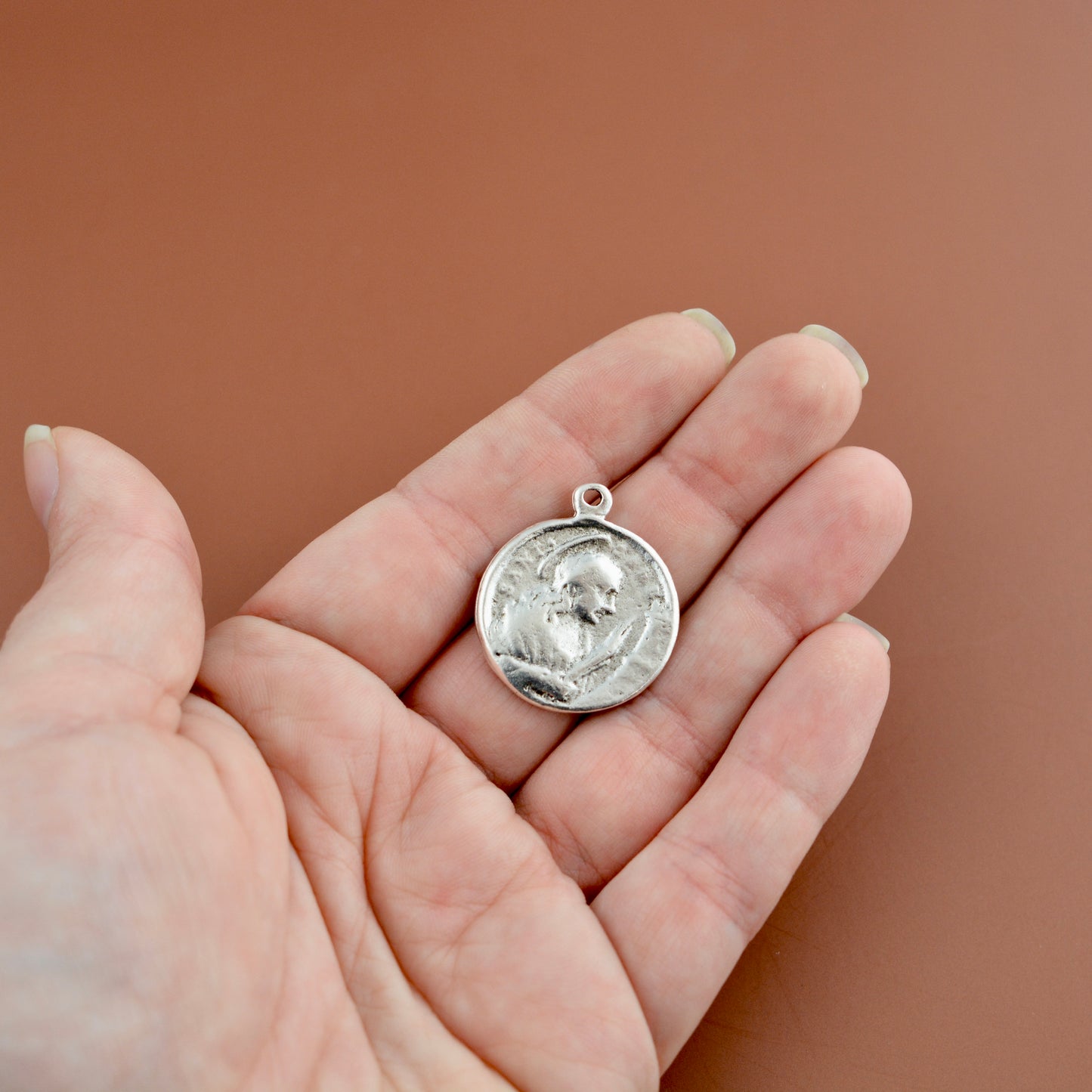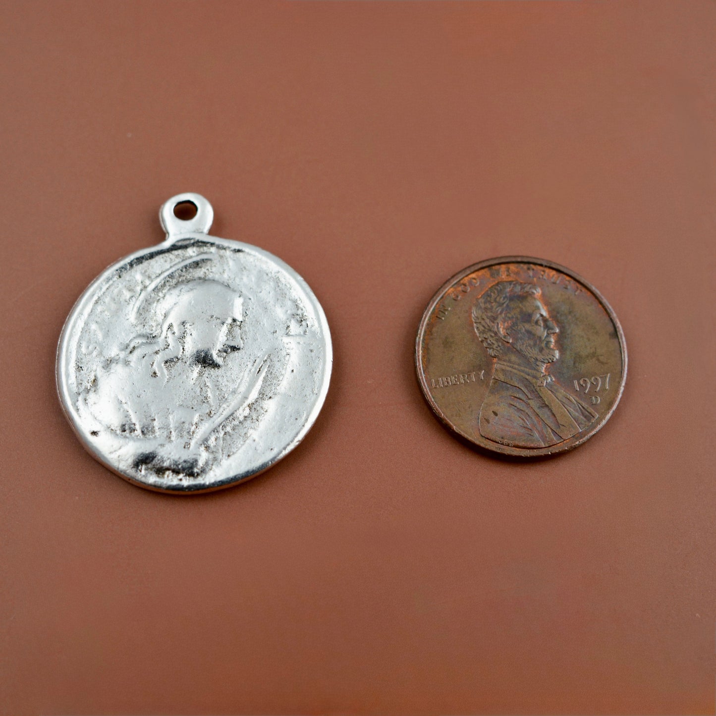 The original of this beautiful antique pendant is over 200 years old. St. Michael is displayed on one side and St. Barbara on the other side. This pedant is perfect for bracelets, necklaces, or earrings.