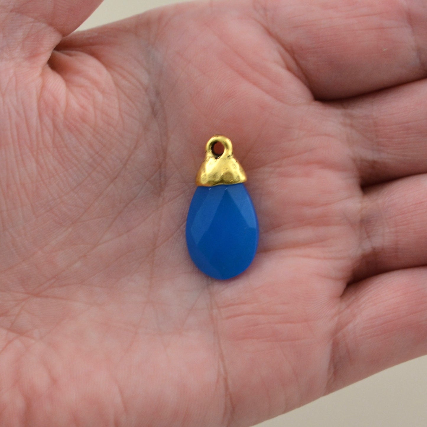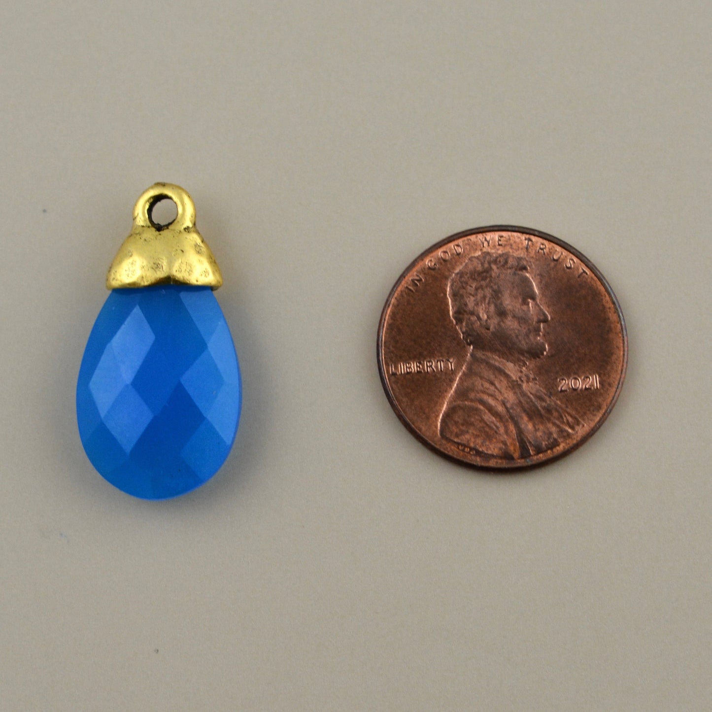 Bright blue chalcedony quartz adds elegance and a pop of color to your designs! These pear faceted briolettes are perfect for adding to your jewelry creations without any wire wrapping needed, saving you time and effort. Known for enhancing creativity, intuition, and mental clarity, blue chalcedony is an ideal choice for your designs.