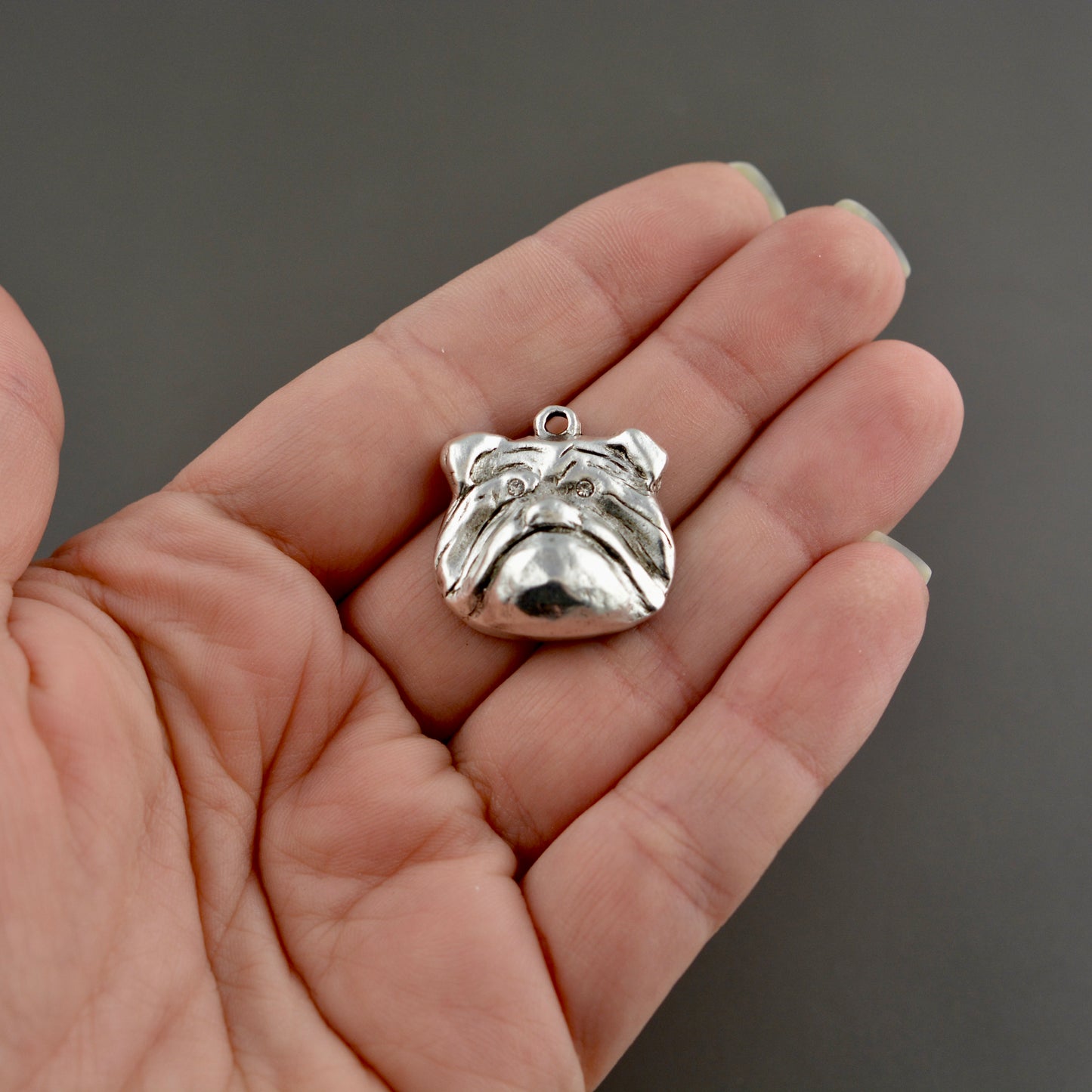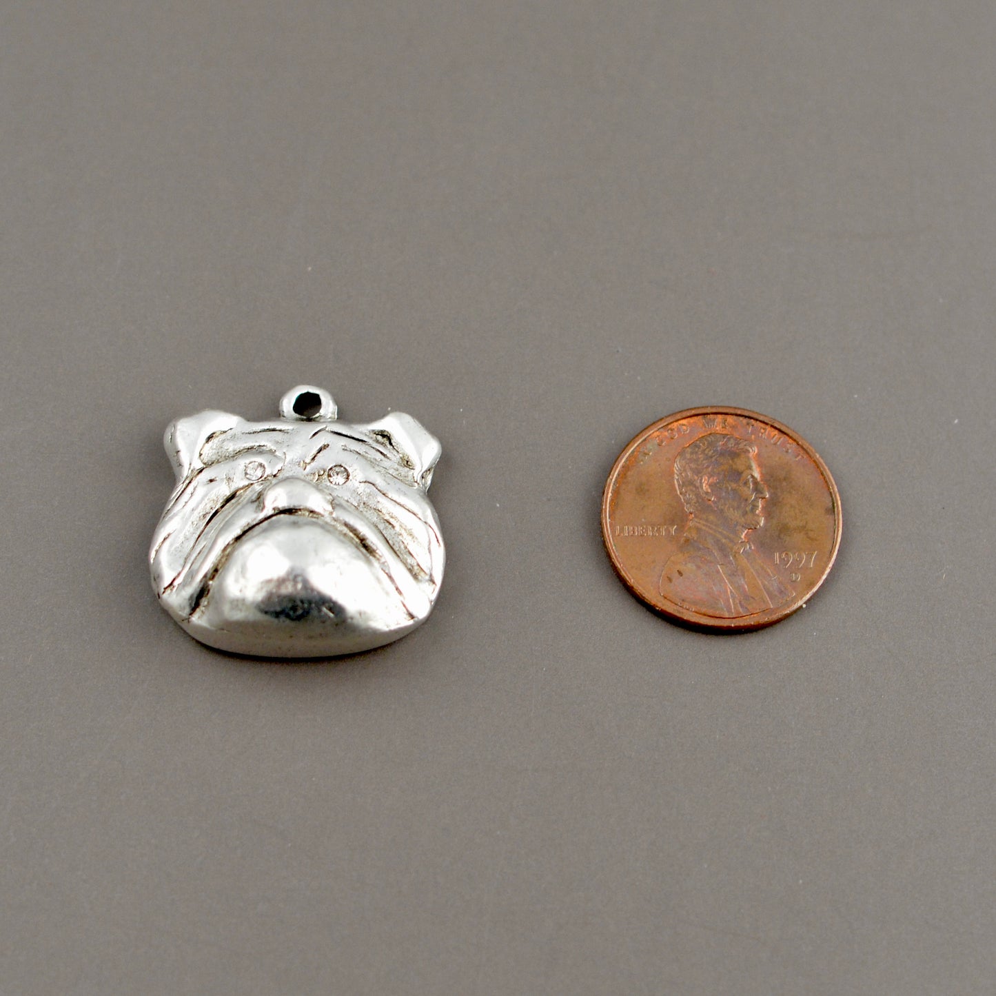 Bring your jewelry designs to life with this charming silver bulldog charm! Featuring glittering rhinestone eyes and quality silver-tone craftsmanship, it's the perfect finding for bracelet makers, necklace designers, and dog-loving jewelry enthusiasts. Whether you're creating custom pieces or building a themed collection, this versatile charm adds instant personality and sparkle to any project.
