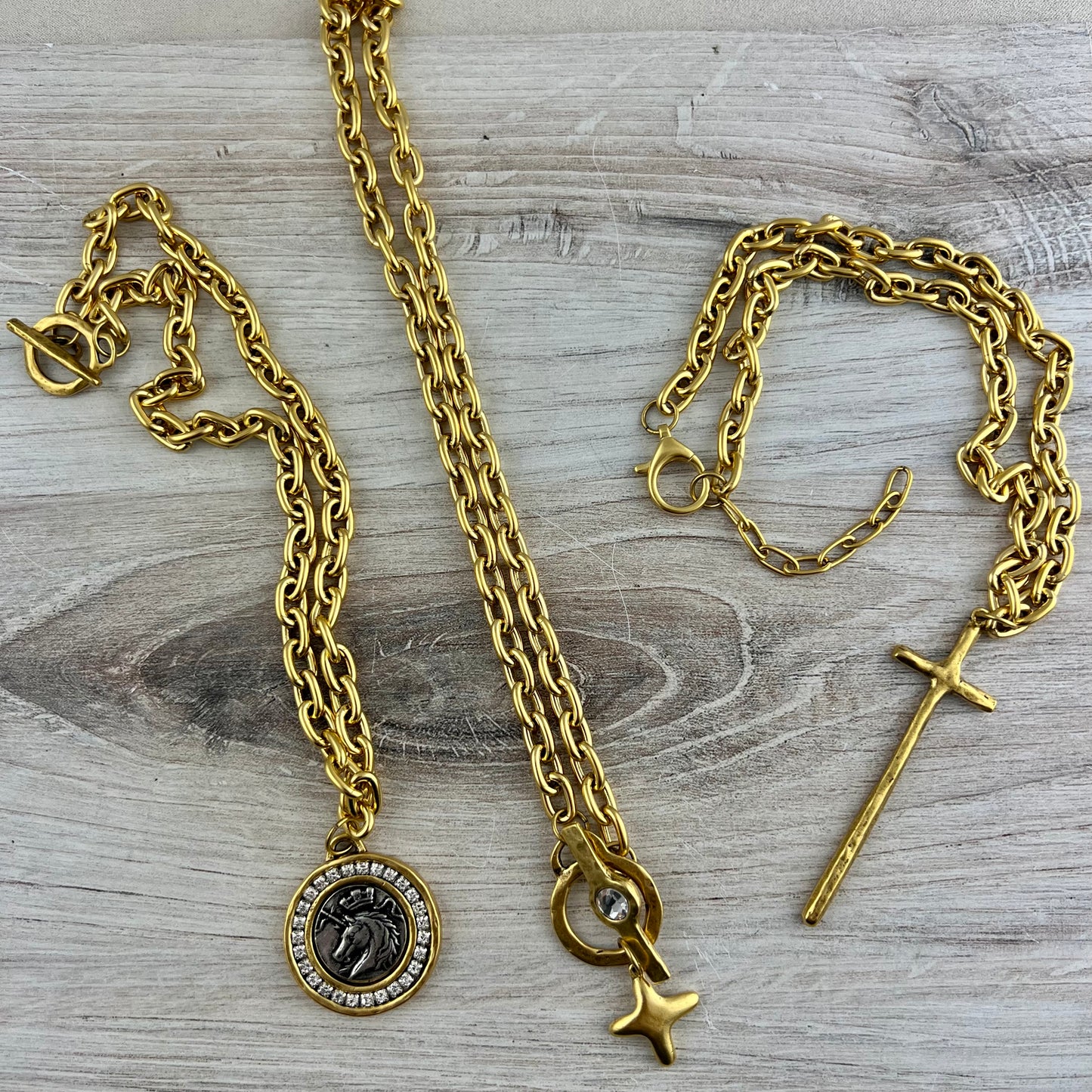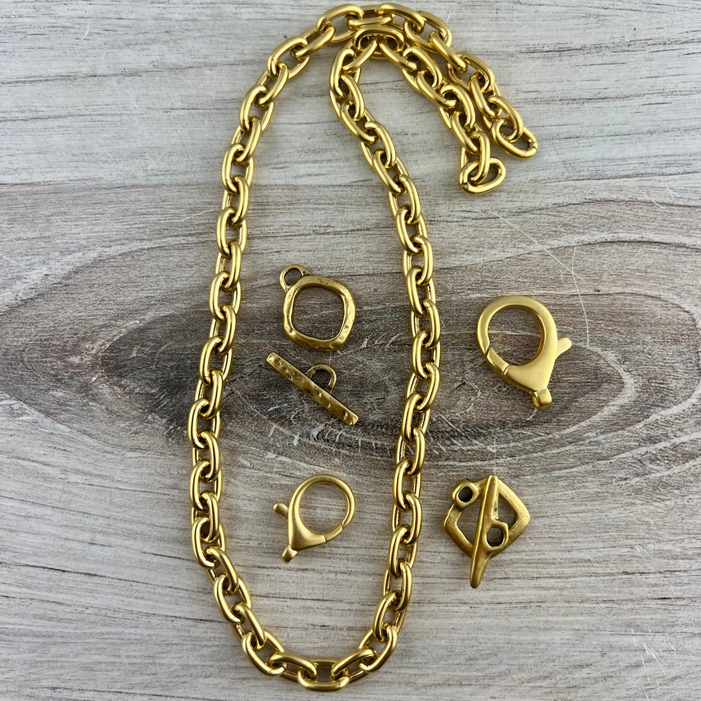 All Carson's Cove "12k Antiqued Gold" finish components are plated with real 12k gold, and then antiqued. They are all the same gold, but highly textured pieces may look a bit different than smooth pieces because the texture captures more of the antiquing elements. Why 12k gold? Because 12k gold is a light, neutral gold without an orange tone, and it looks beautiful on every skin tone!