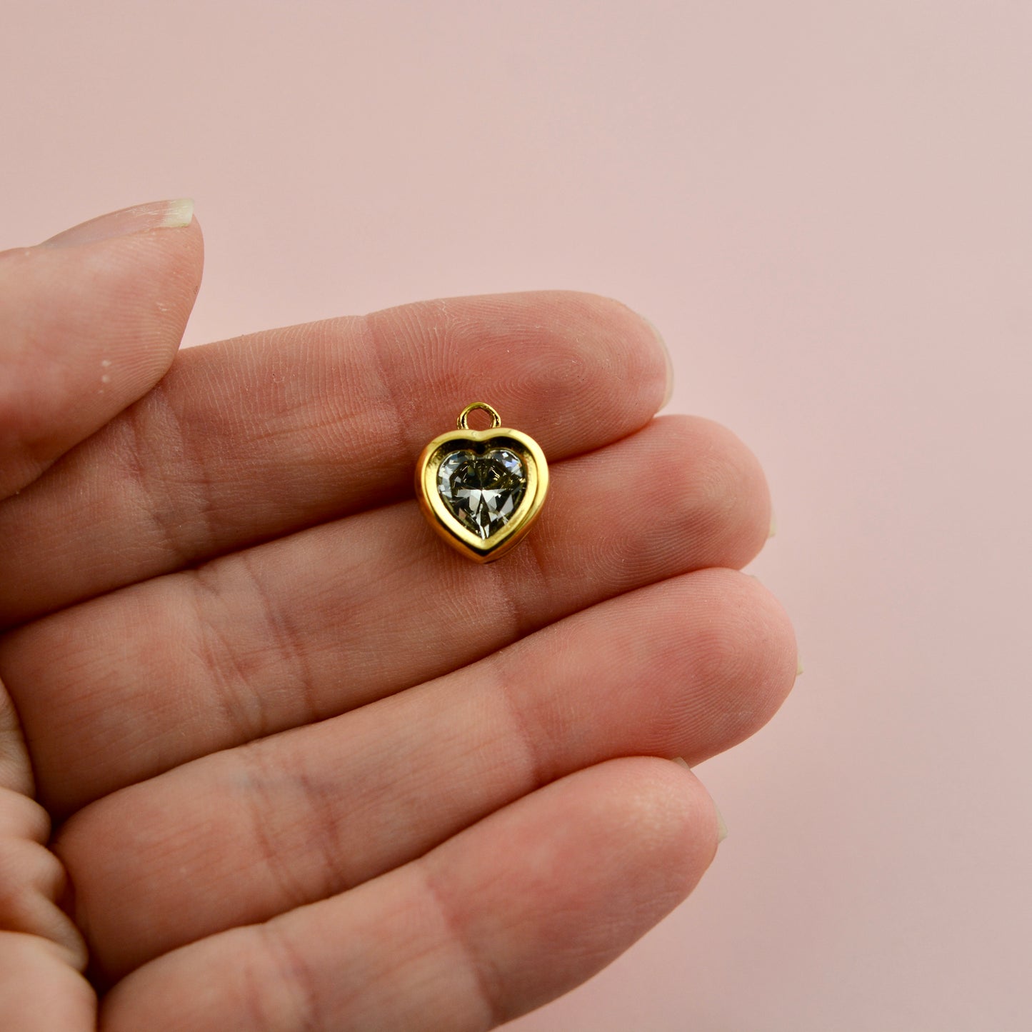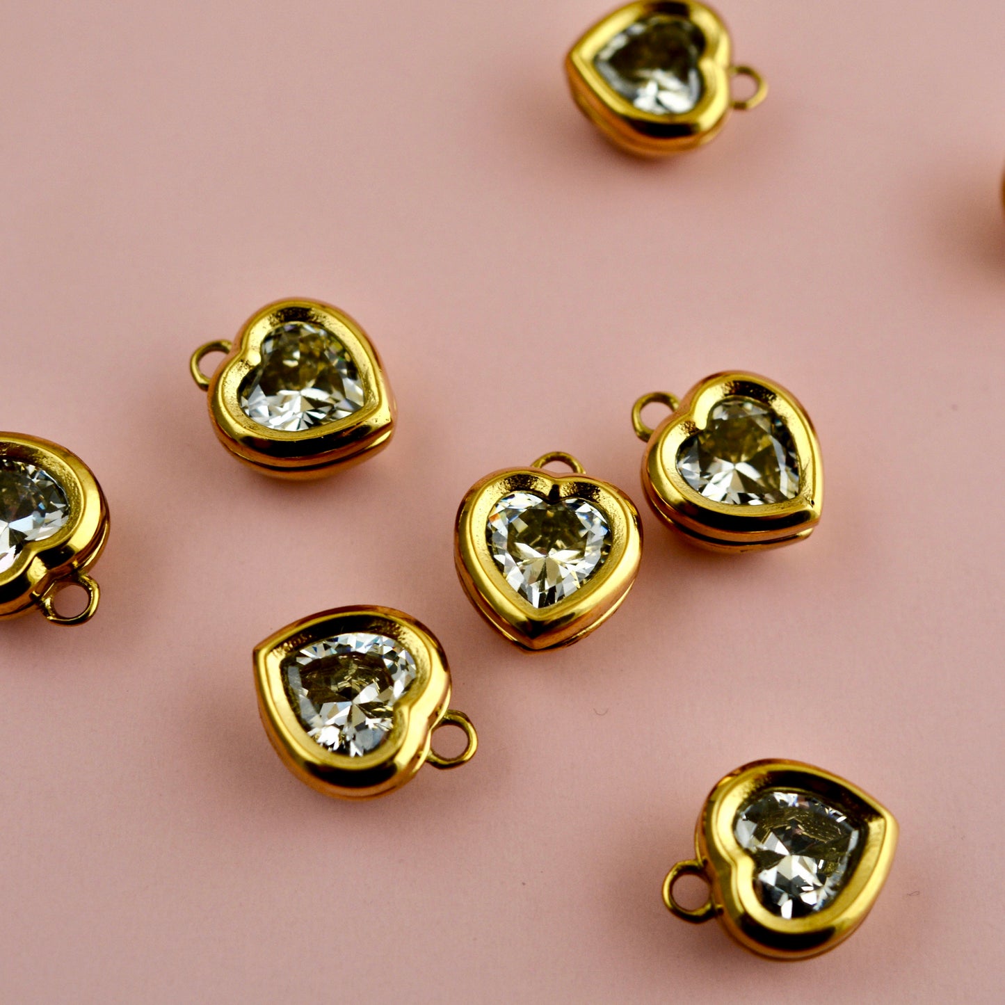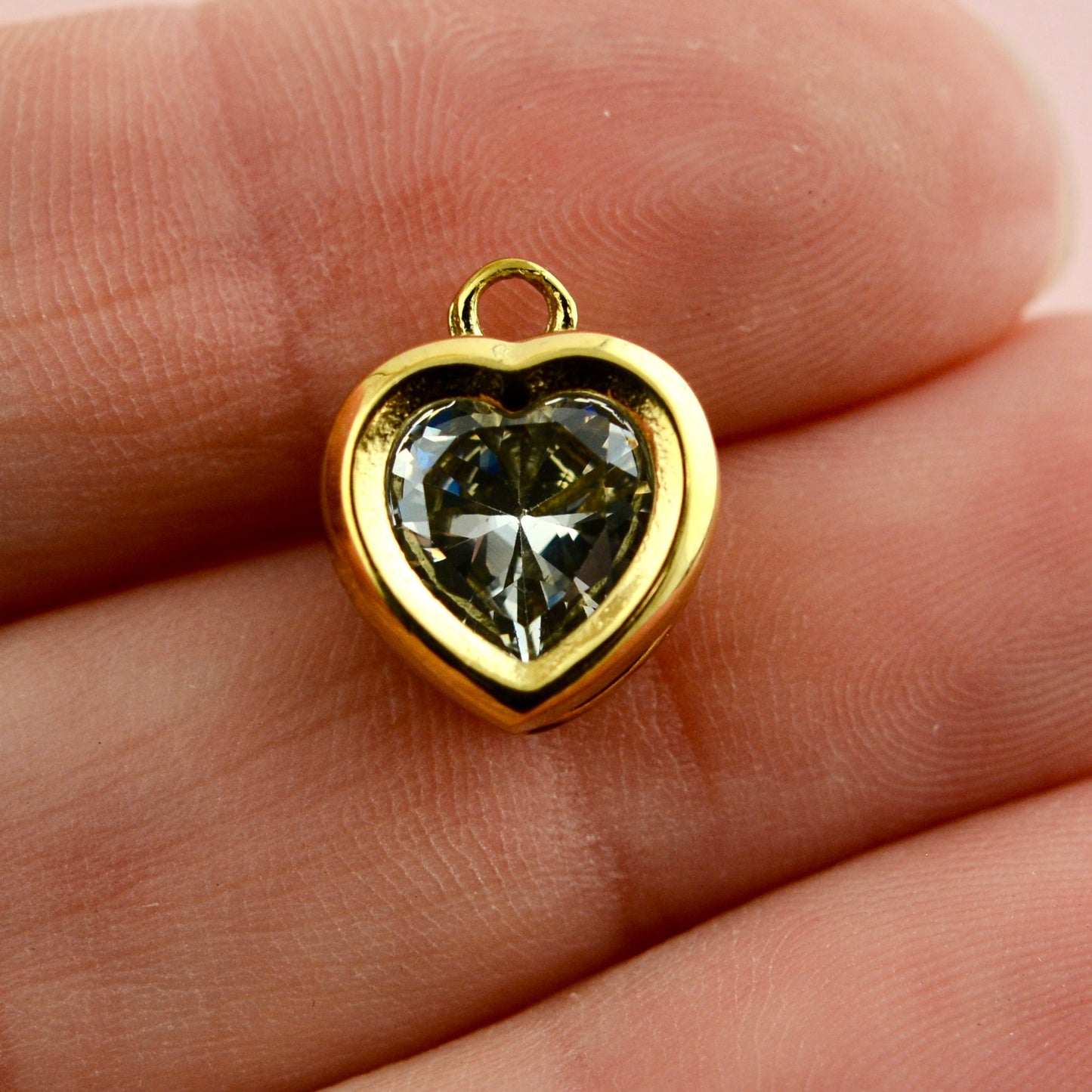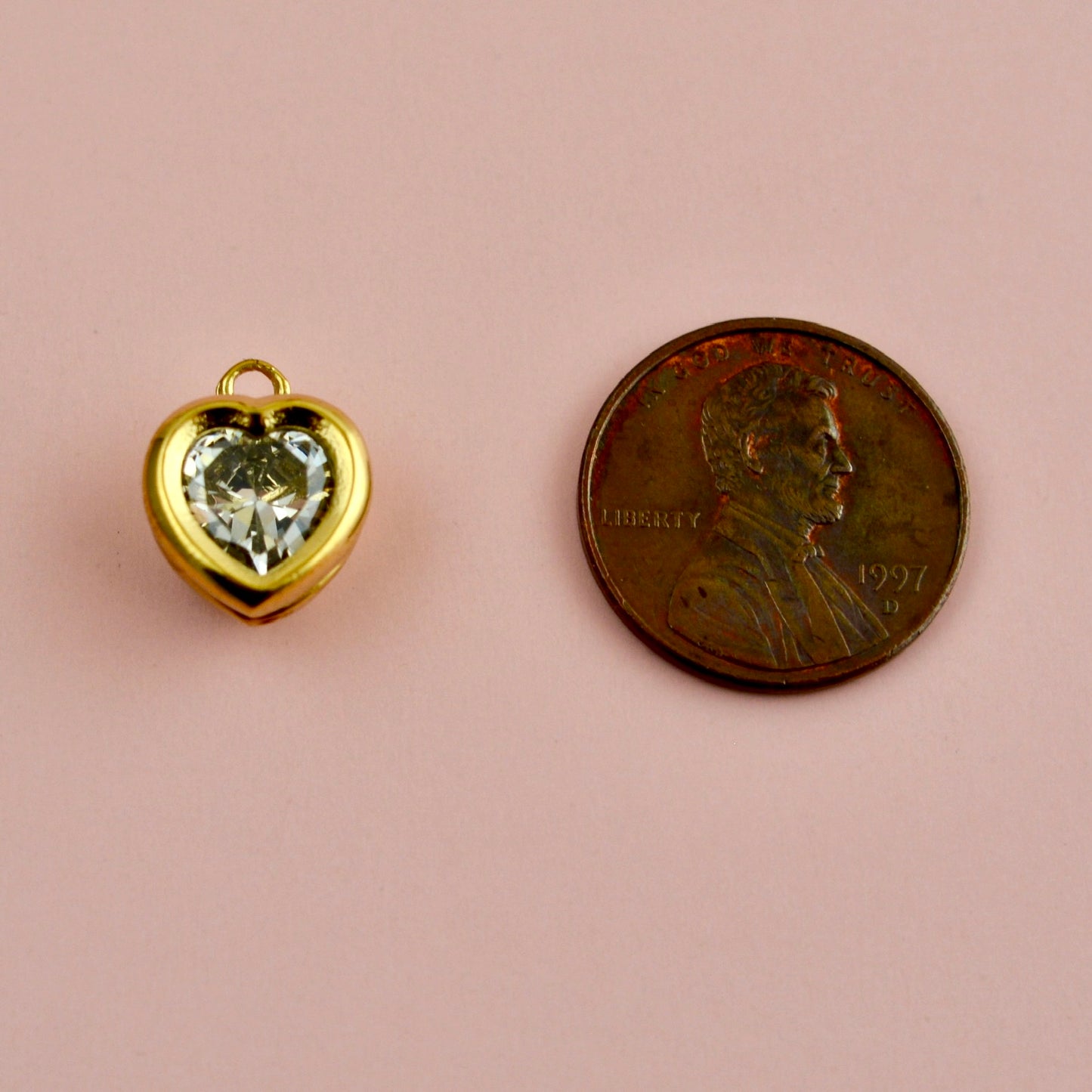 Bring elegance to your jewelry projects with this sparkling clear, heart shaped CZ charm. The CZ stone sits in a gold setting that delivers a brilliant sparkle and a polished touch to every jewelry design.