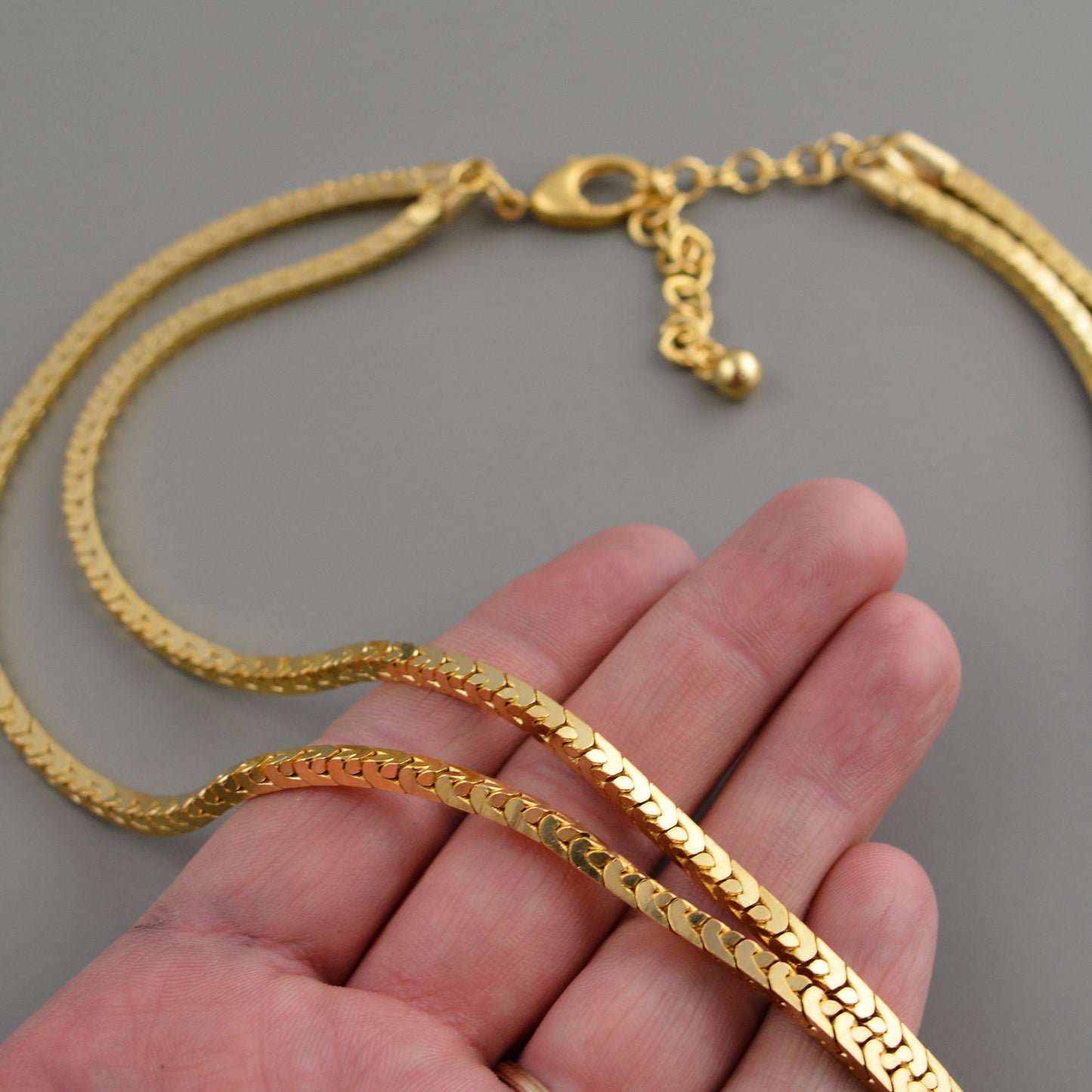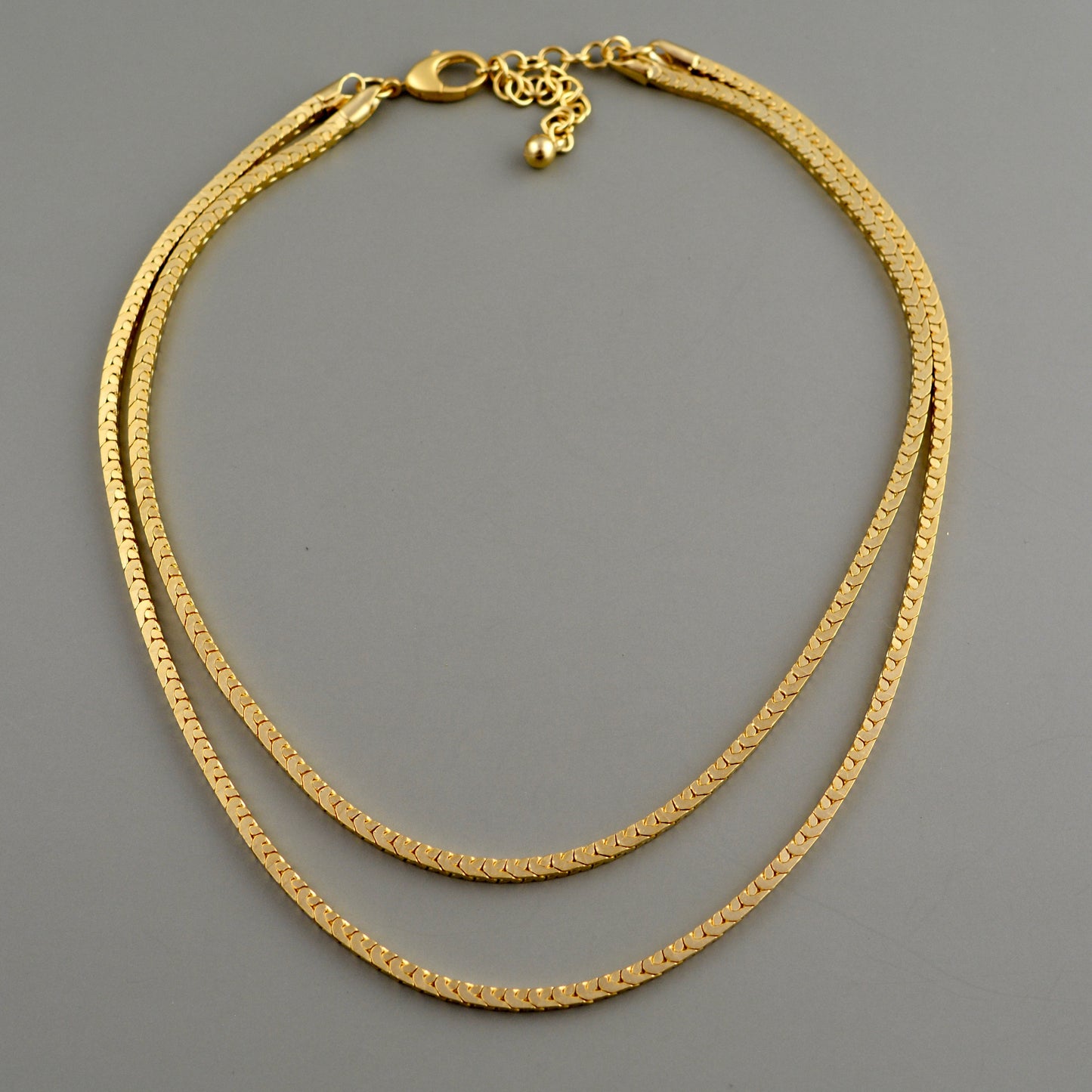 Create stunning pieces with this double layered gold chain featuring textured box herringbone links. Equipped with a reliable swivel ring clasp for secure fastening, a 3 inch extender for your desired length, and finished in beautiful gold, it's the perfect supply for your next jewelry project.