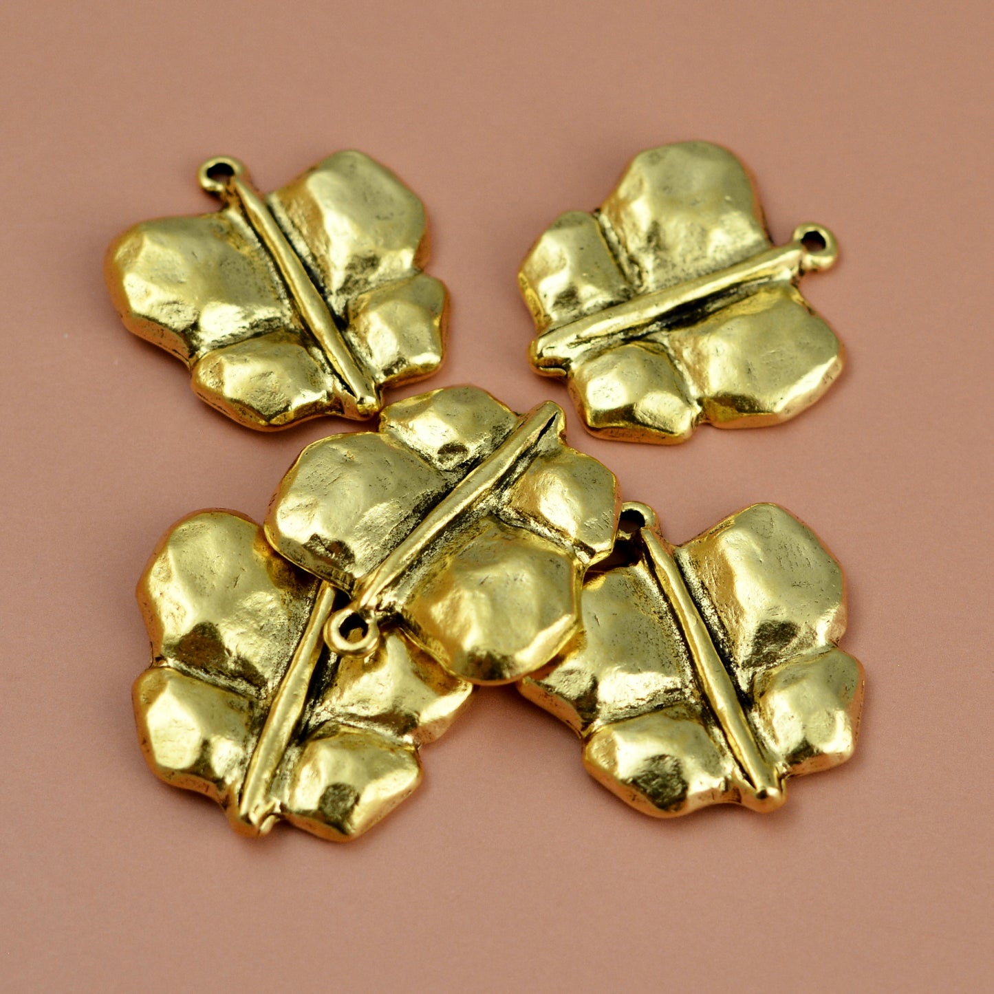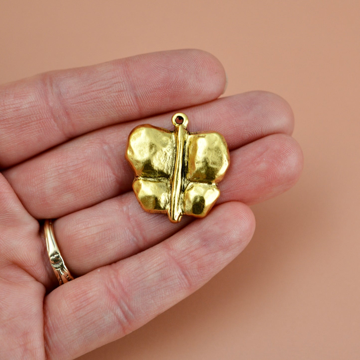 This gold butterfly pendant is ideal for inspiring creativity in your jewelry designs. It's crafted in a hammered, abstract style to facilitate eye-catching jewelry!