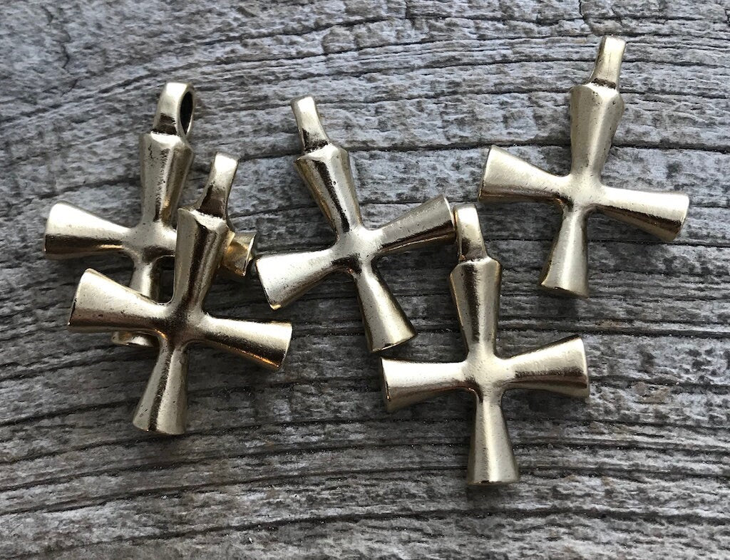 Here is a Maltese style cross that can be used for men and women alike. It has a built-in bail, so you can slide a chain or leather through it easily. Men and women can enjoy this cross. Did you know the Maltese cross is the firefighter symbol? Gift this to a fireman on a keychain. Or make a simple leather necklace!