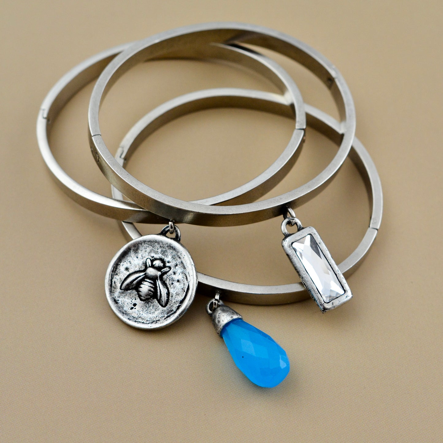 Silver Hinged Bangle Bracelet, Flat Smooth with Charm Attachment, Jewelry Making Supplies, PW-6348