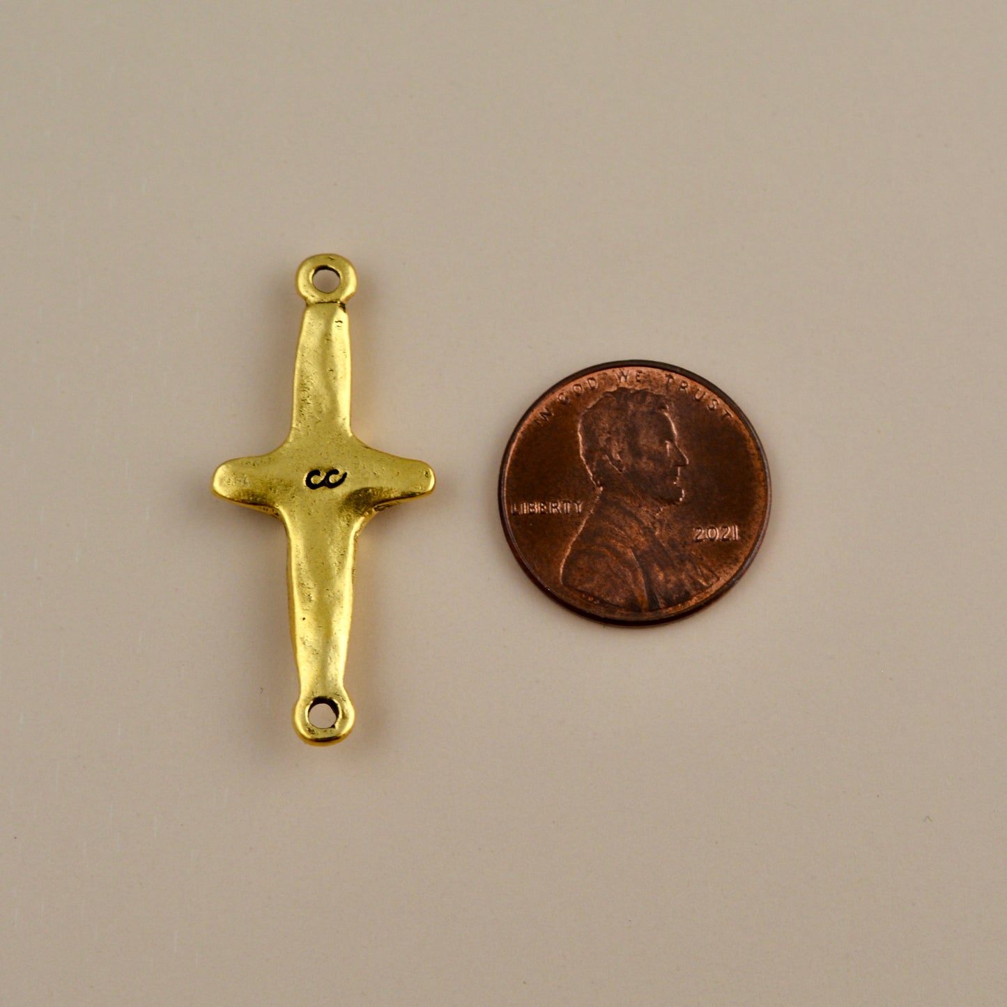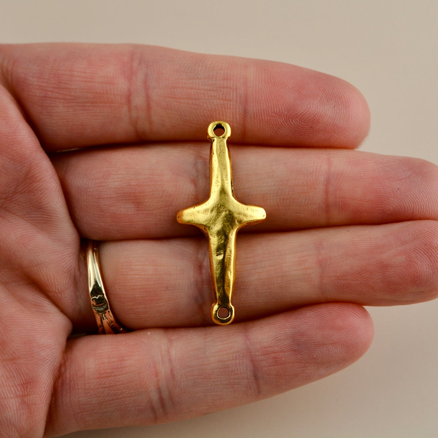 Twinkling Star Cross Connector, Gold Artisan Charm, Jewelry Making Supplies, GL-6351