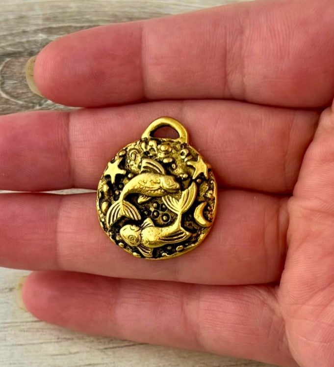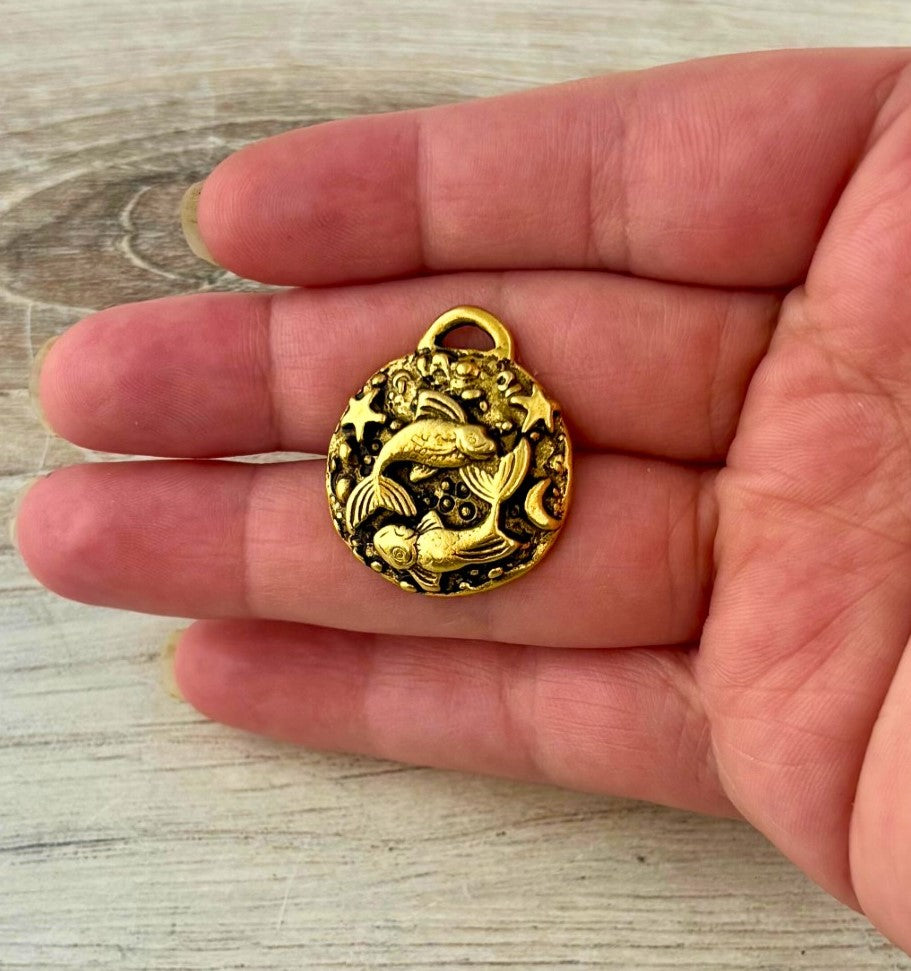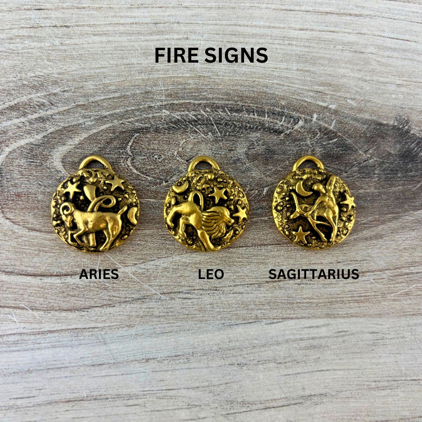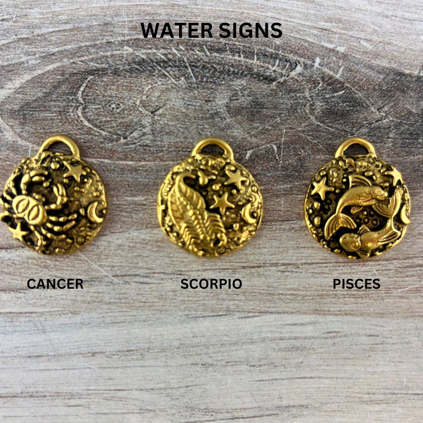 Zodiac Pendant, Gold Horoscope Charm, Birth Month Astrology Jewelry Making Medal, GL-6324