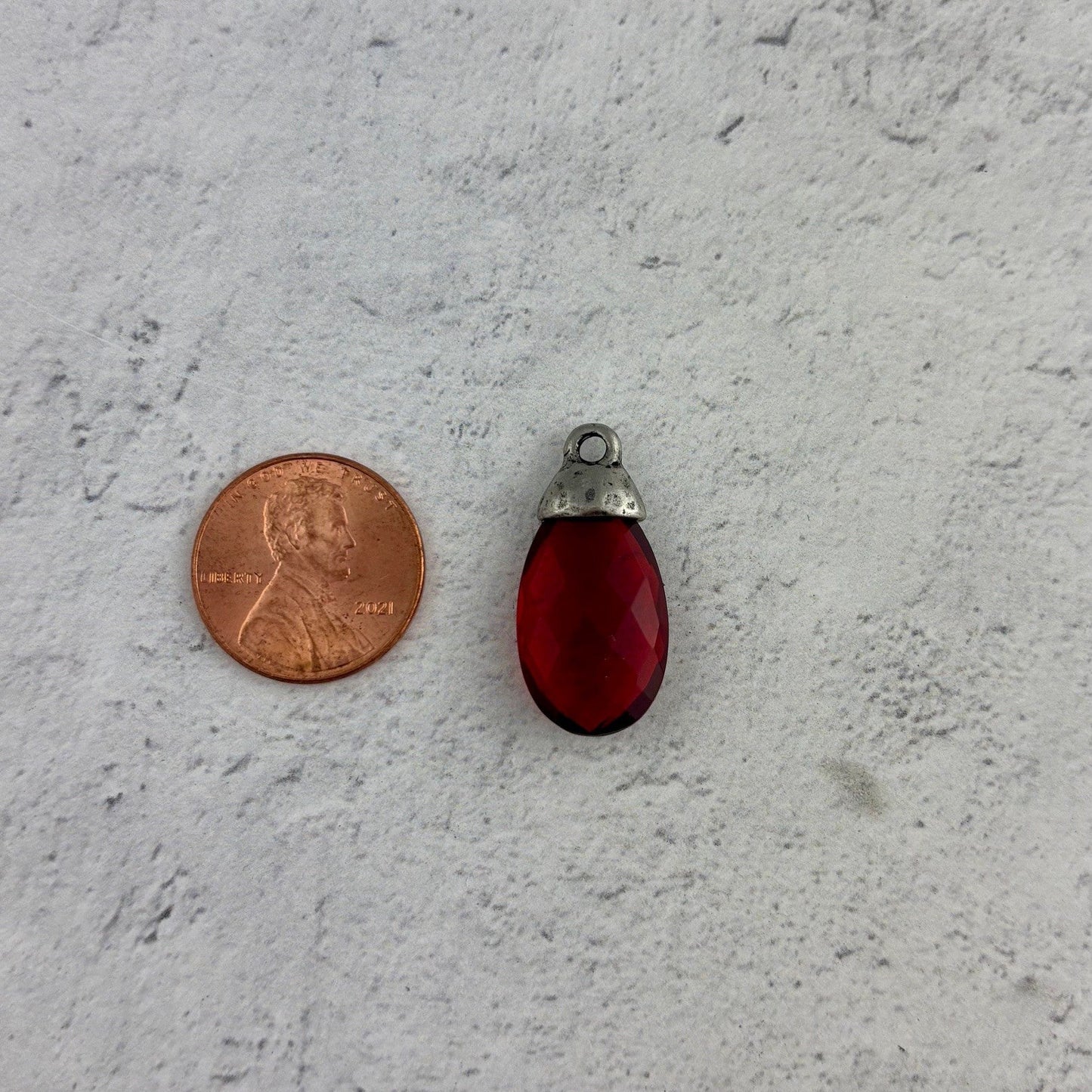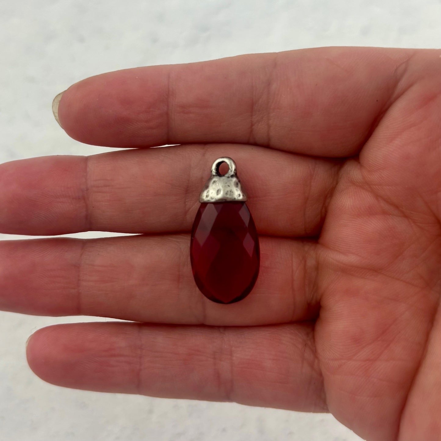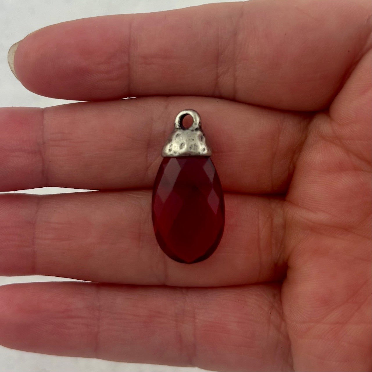 Red Quartz Garnet Color Pear Faceted Briolette Drop Pendant with Antique Pewter Bead Cap, Gemstone, Jewelry Making Artisan Findings, PW-S045