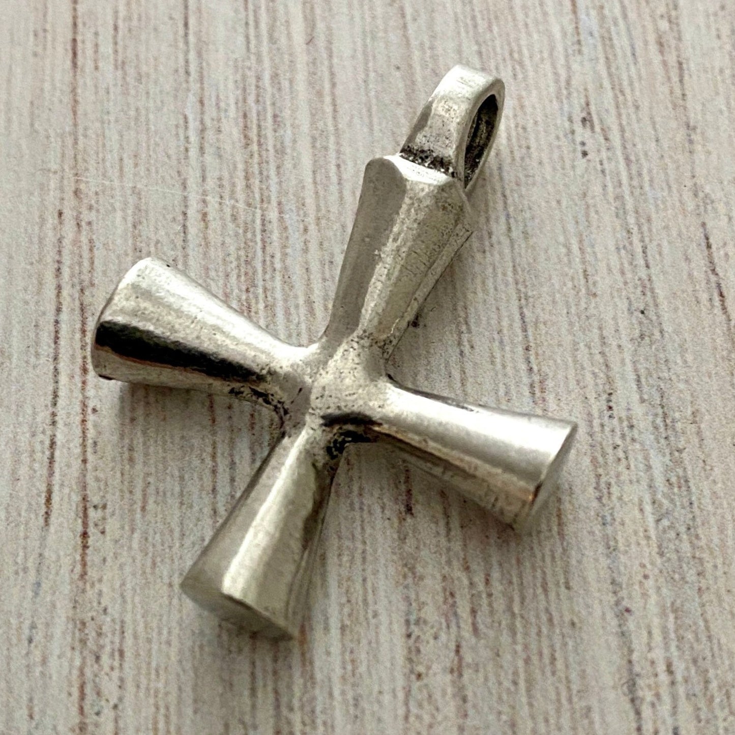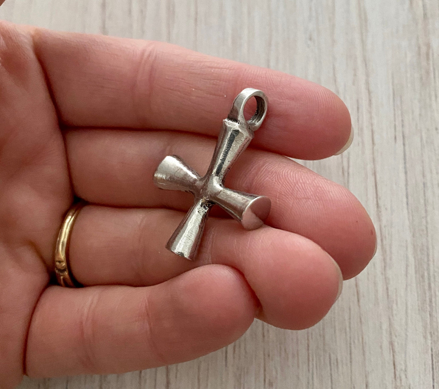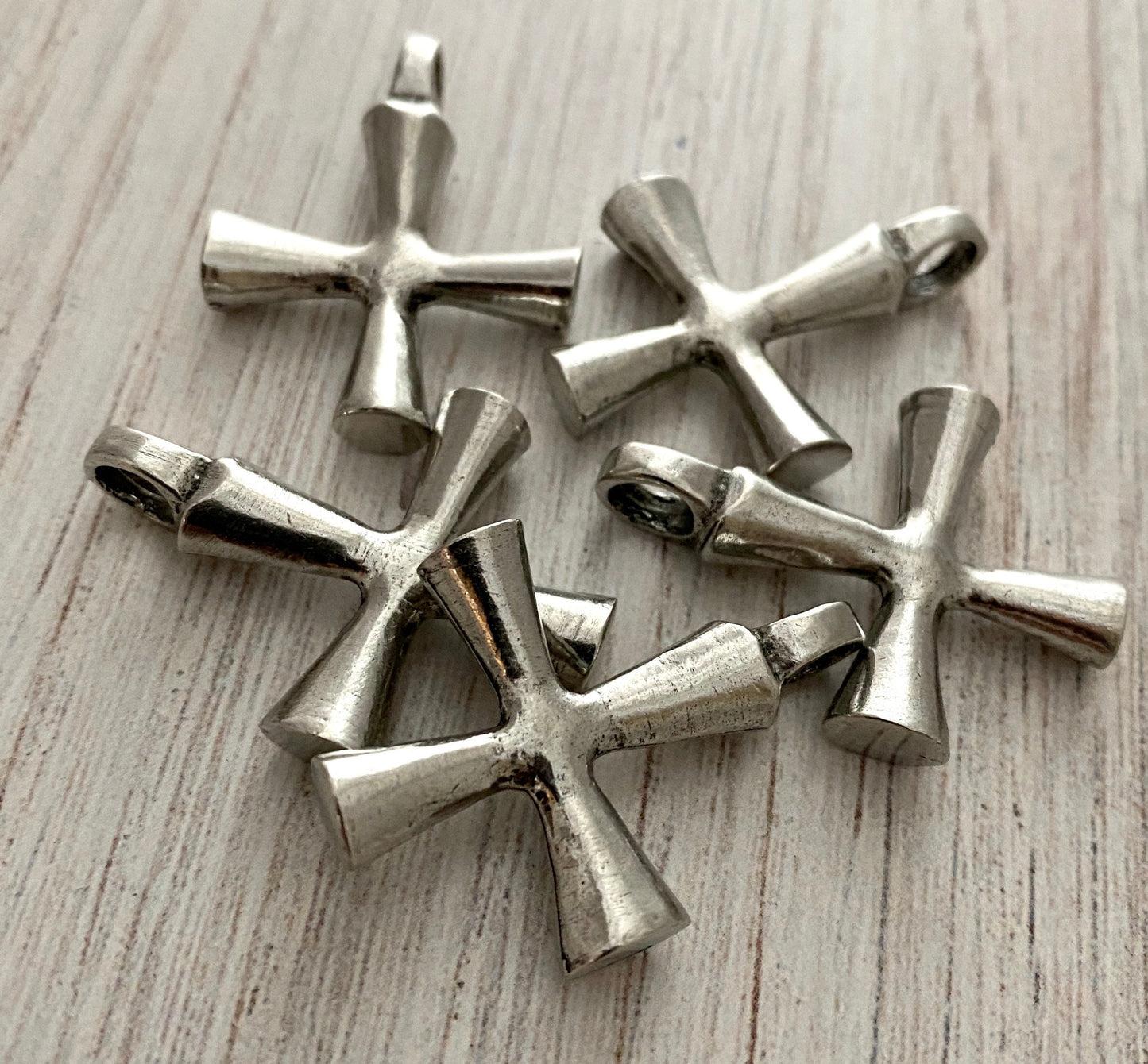 Here is a Maltese style cross that can be used for men and women alike. It has a built-in bail, so you can slide a chain or leather through it easily. Men and women can enjoy this cross. Did you know the Maltese cross is the firefighter symbol? Gift this to a fireman on a keychain. Or make a simple leather necklace!