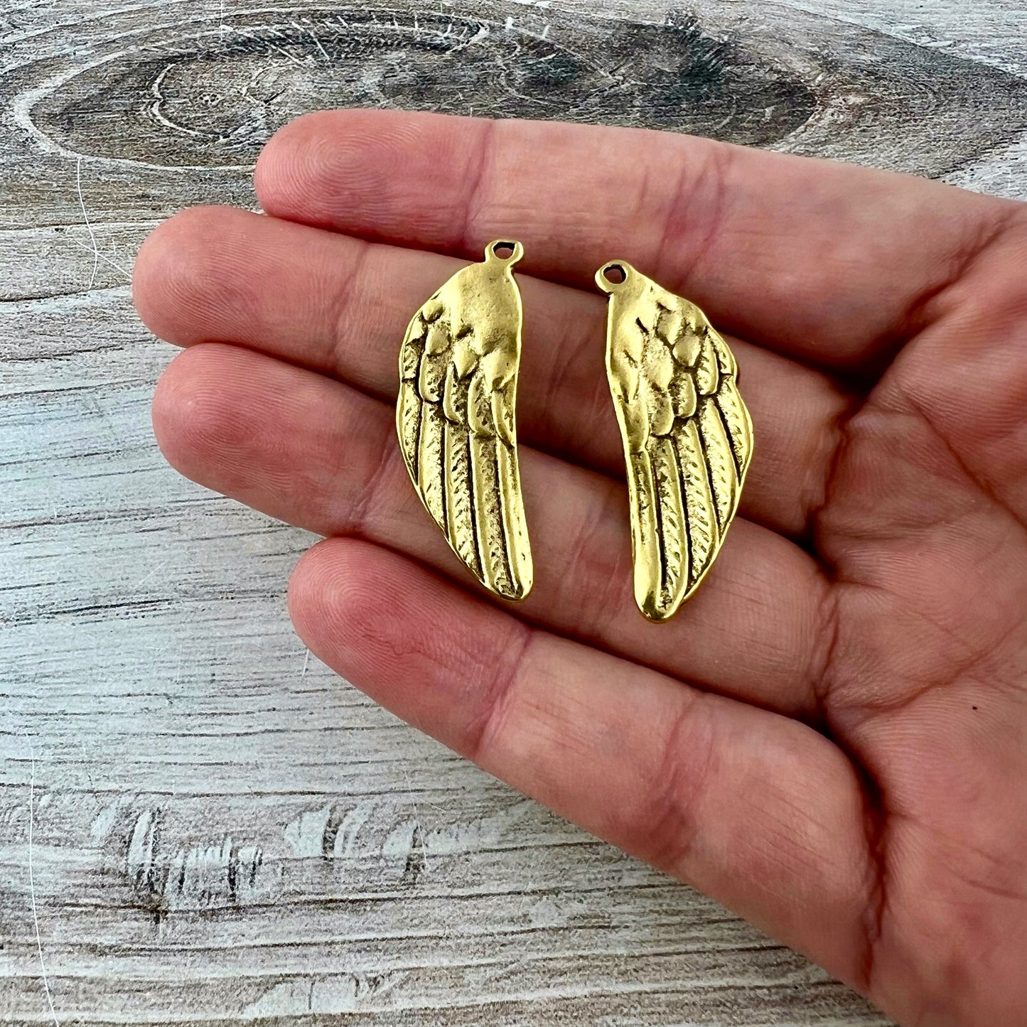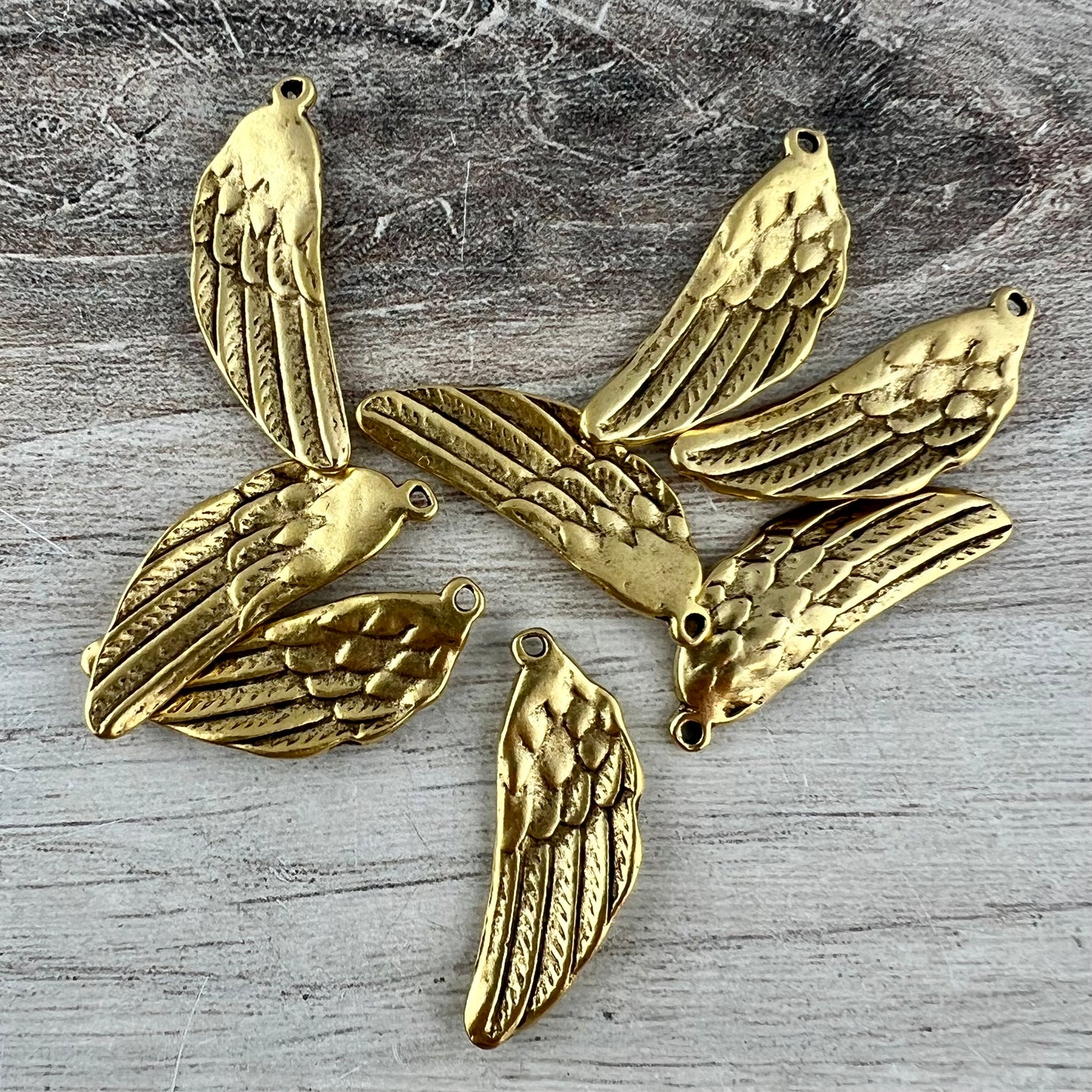 Enhance your jewelry projects with this lovely angel wing charm set. Each charm features a beautifully designed left and right wing, perfect for adding to bracelets, necklaces, or earrings. Their lightweight design makes them easy to use in your creations.