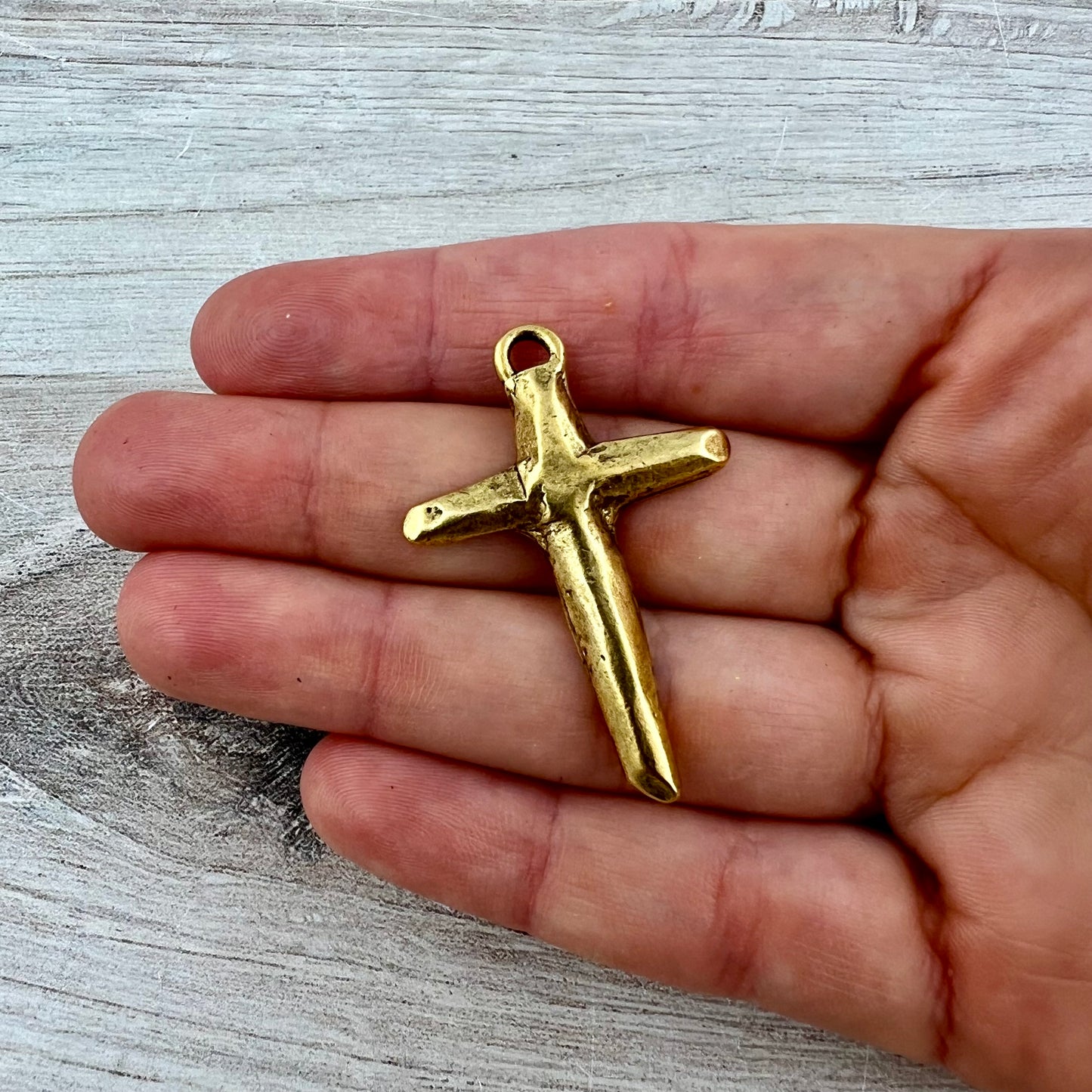 This rugged hammered cross is perfect for creating unique necklaces, bracelets, or earrings. Its bold, distinct design adds a strong, modern touch to any jewelry piece.