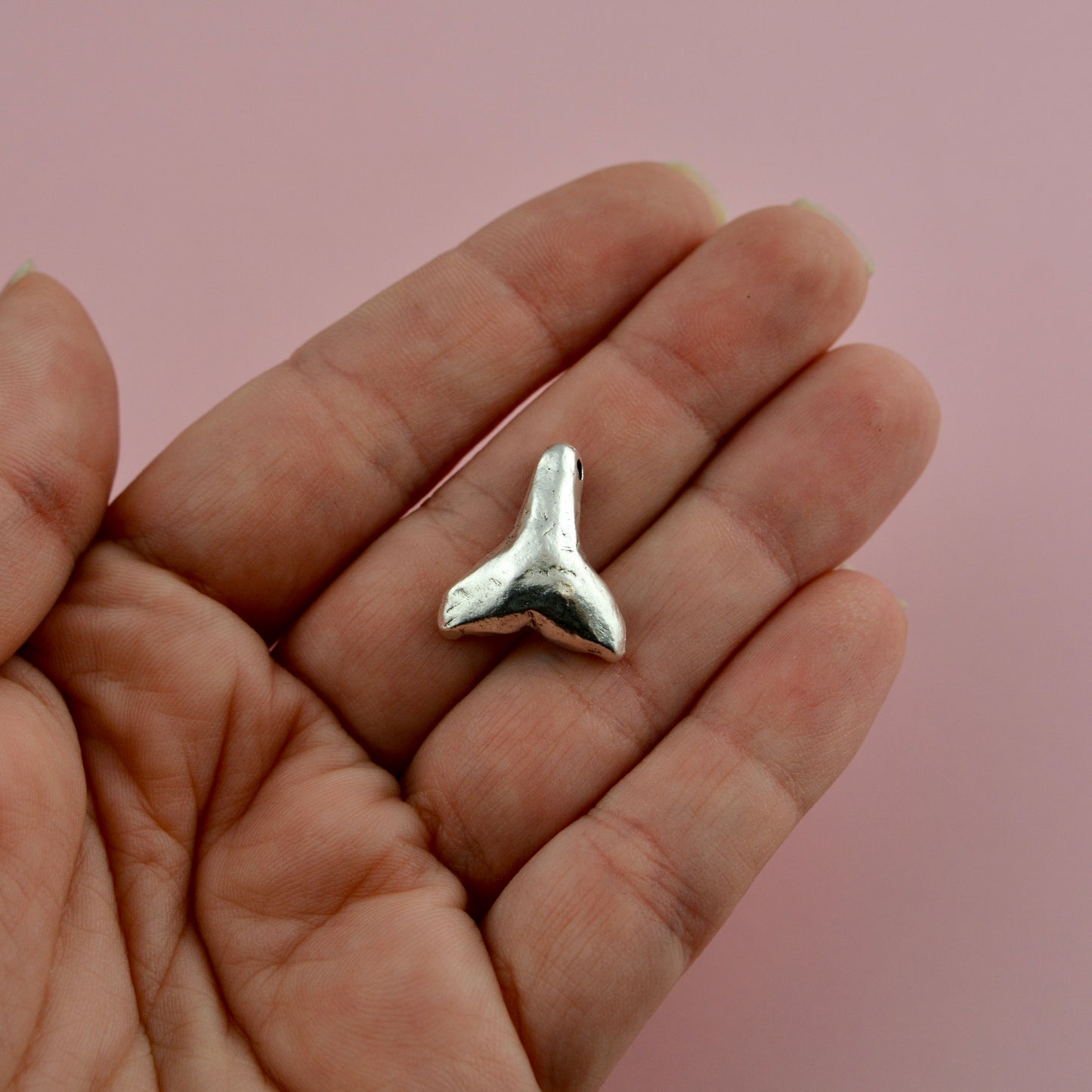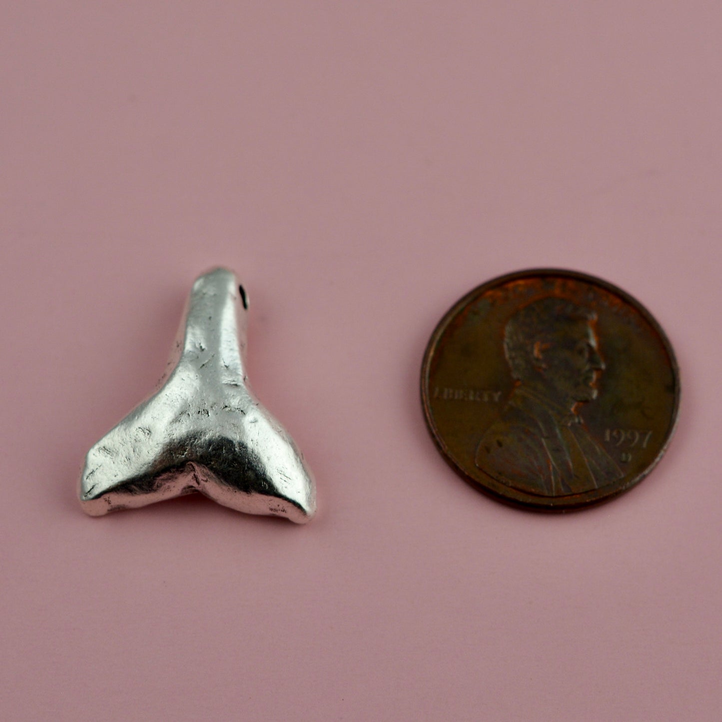 Dive into creativity with this charming antiqued silver whale tail pendant. Perfect for jewelry makers and designers, this versatile finding adds a touch of oceanic elegance to bracelets, necklaces, and mixed-media projects. The rich, aged silver finish brings character and sophistication to your handmade pieces. Whether you're crafting coastal-inspired jewelry or adding a whimsical accent to your designs, this whale tail charm is an inspiring choice for makers who love nature-themed creations.