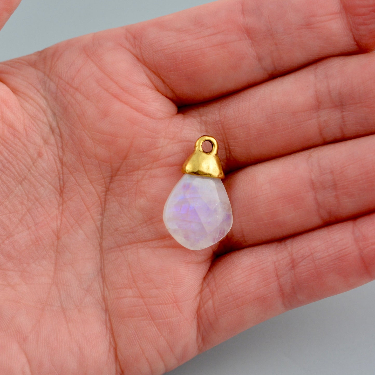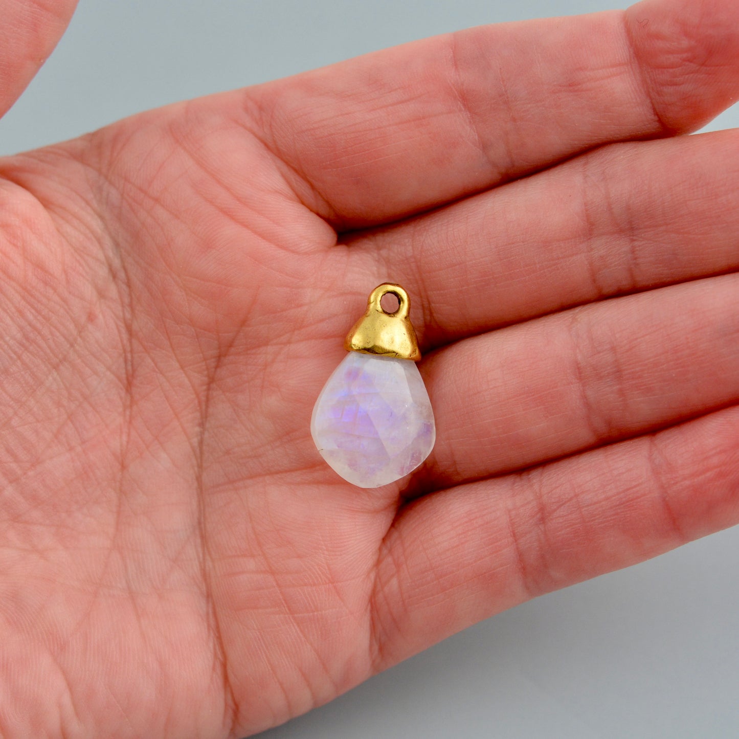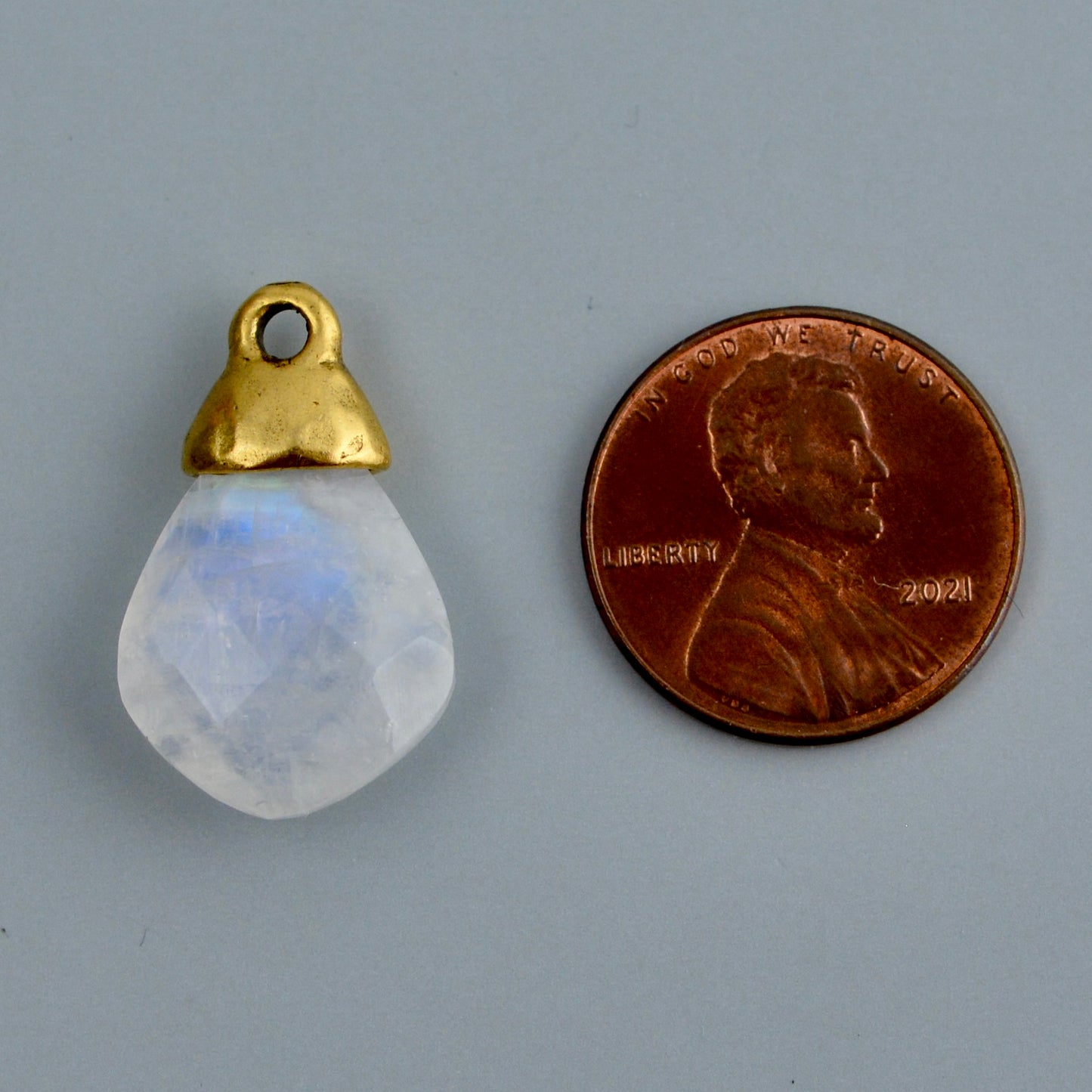 White Rainbow Moonstone Diamond Shape Drop Pendant with Antique Gold Bead Cap, Gemstone, Jewelry Making Artisan Findings, GL-S051