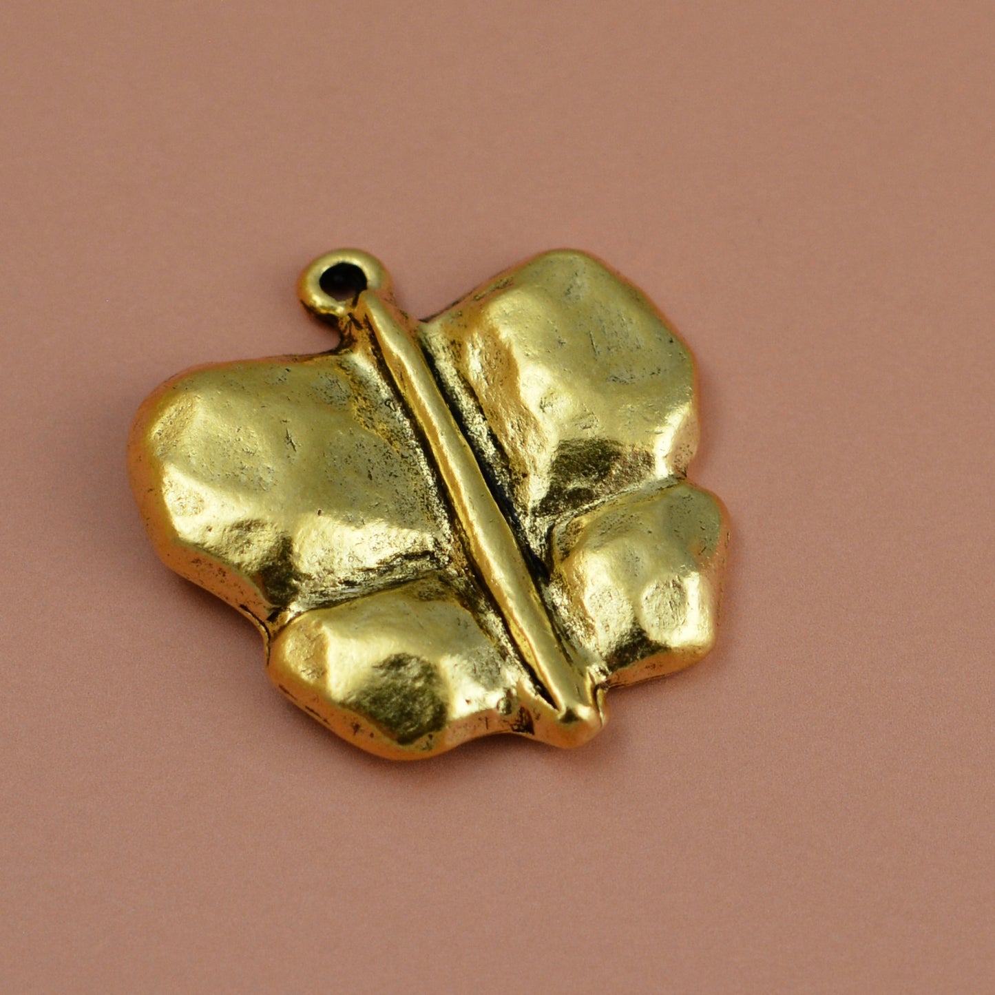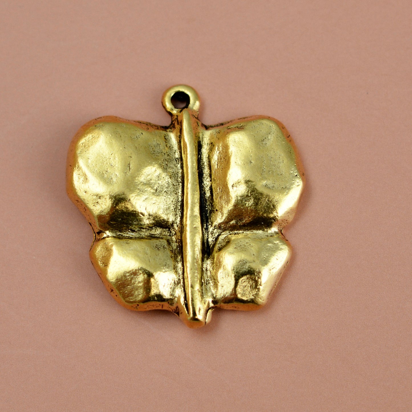 Gold Butterfly Pendant, Artisan Jewelry Making Charm, Components Supplies, GL-6354