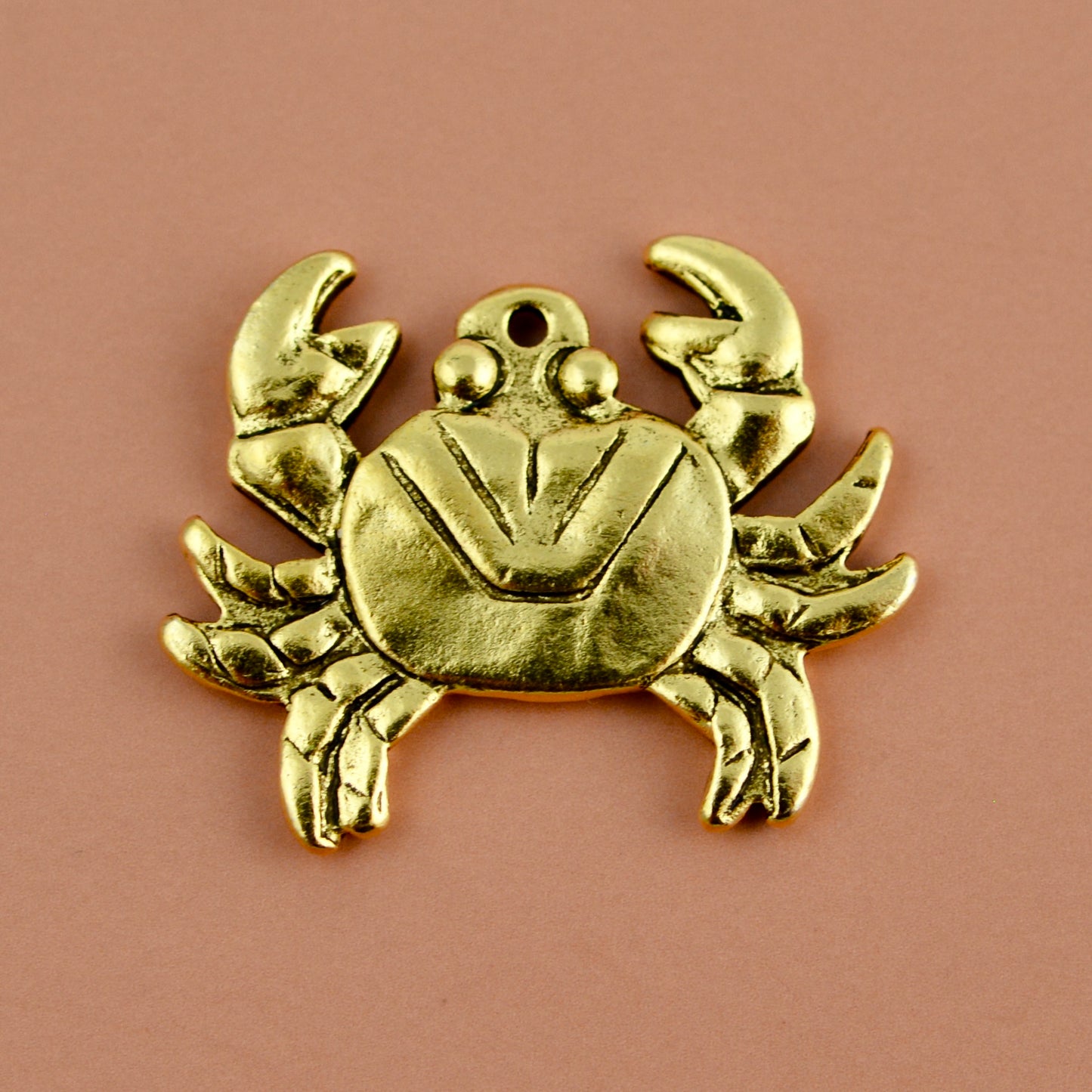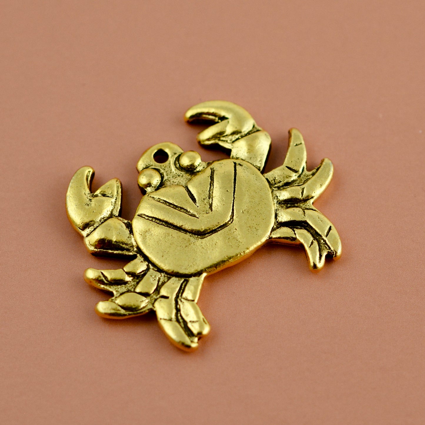 Crab Charm, Ocean Beach Pendant, Antiqued Gold Jewelry Making, Carson's Cove, GL-6355