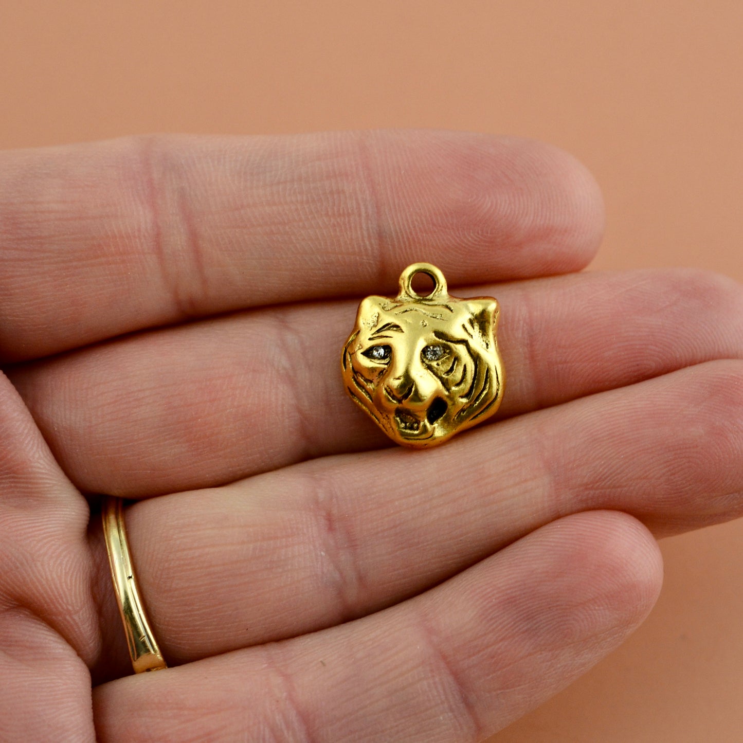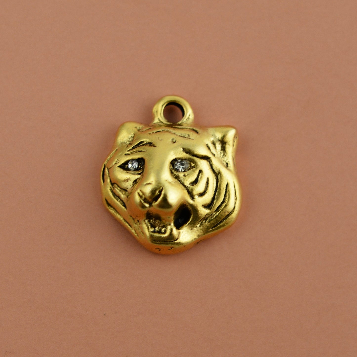 Tiger Charm with Rhinestone Eyes, Gold Cat, Mascot Animal, Jewelry Making Supplies, GL-6353