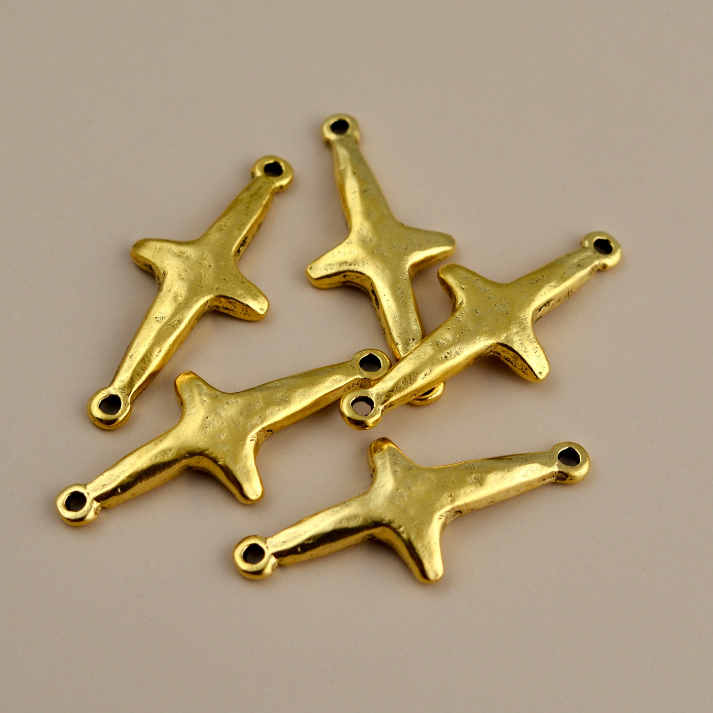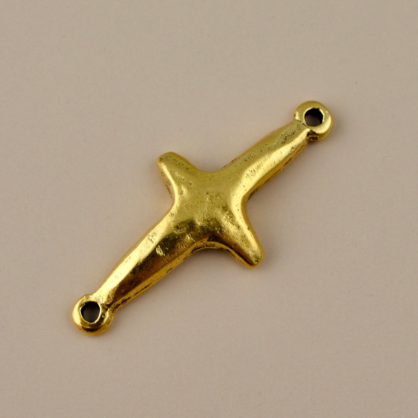 Twinkling Star Cross Connector, Gold Artisan Charm, Jewelry Making Supplies, GL-6351