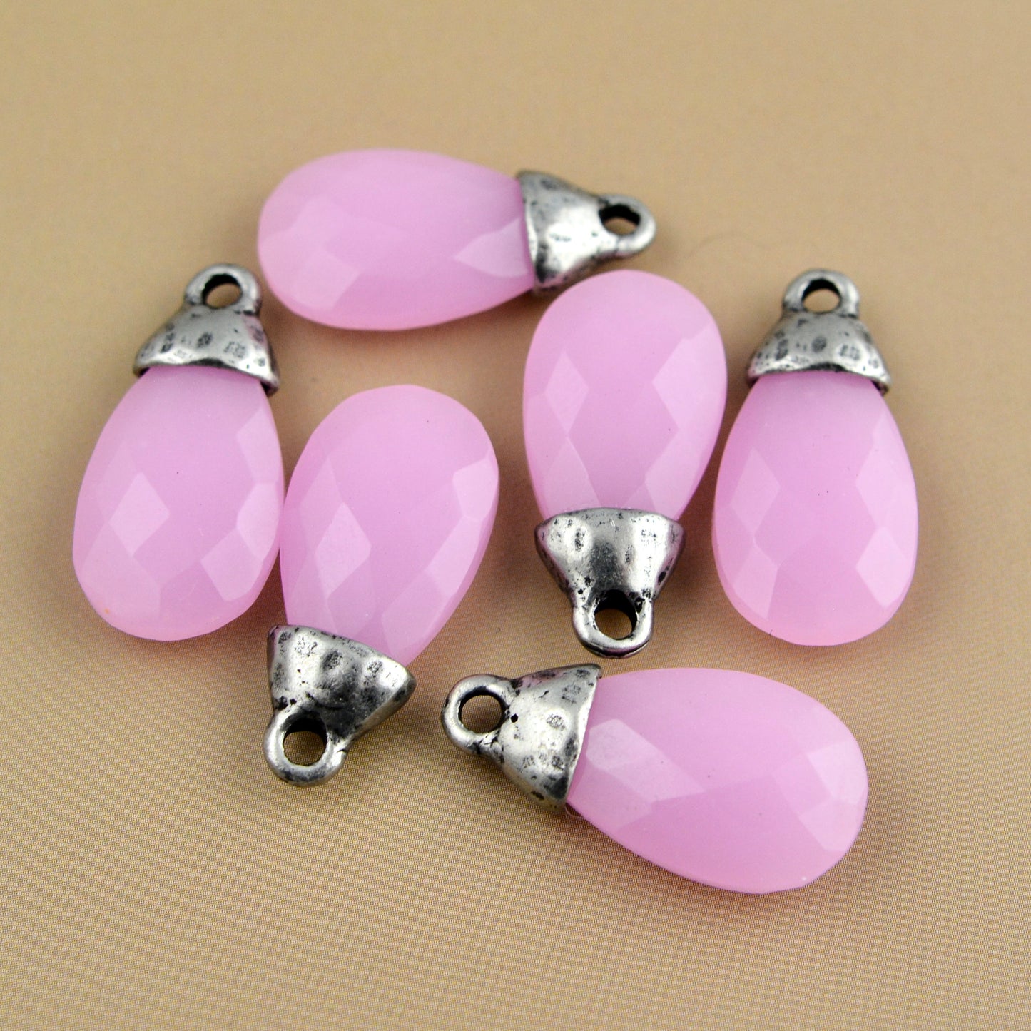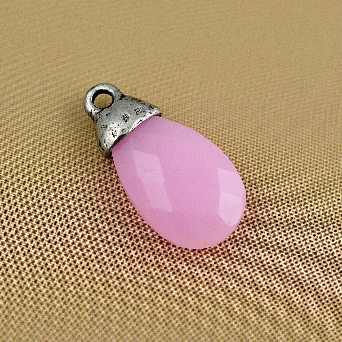 Add Pastel Pink Chalcedony Quartz Pear Faceted Briolette Drop Pendant with Antique Silver Bead Cap, Gemstone, Jewelry Making Artisan Findings, PW-S049 to the cart