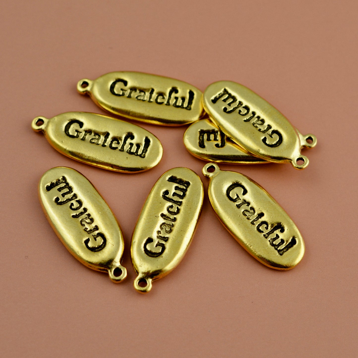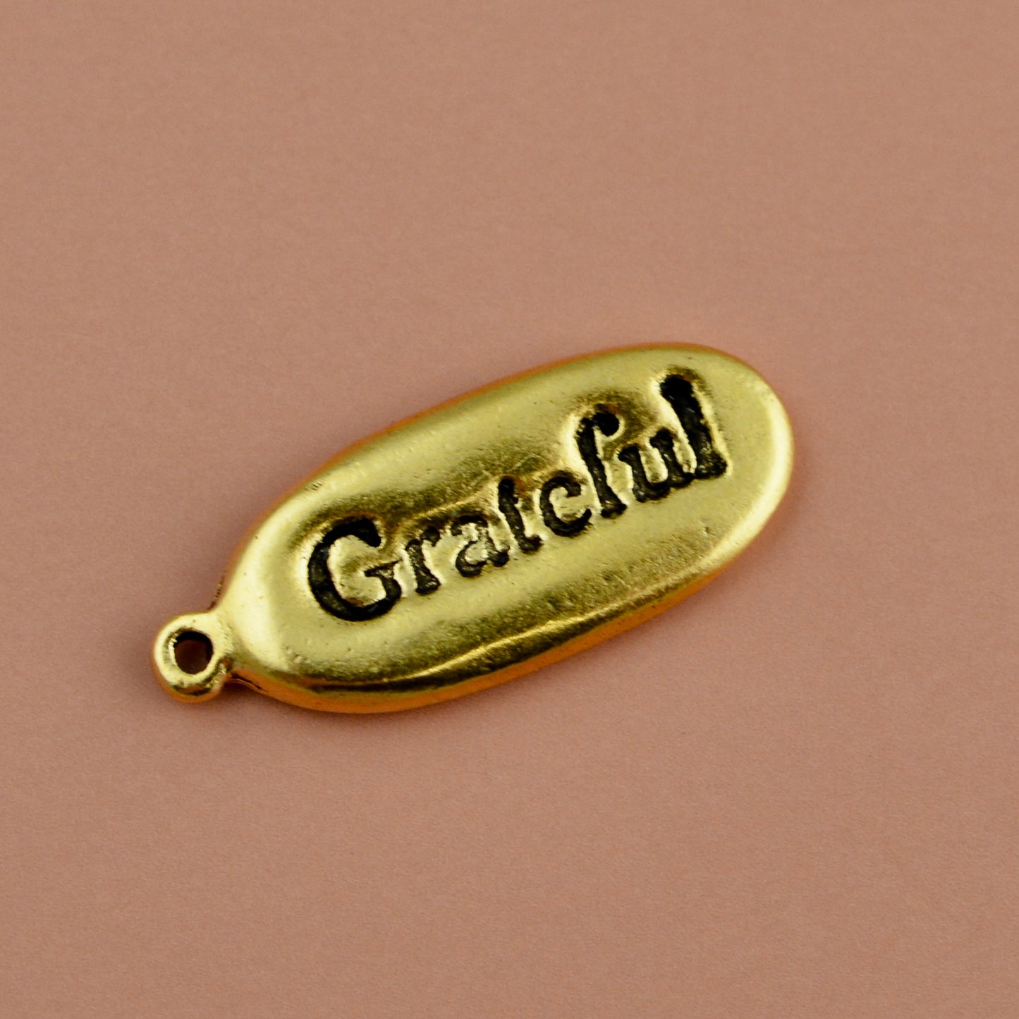 Grateful Charm, Antiqued Gold Jewelry Making Small Tag with Handwriting Text, GL- 6352