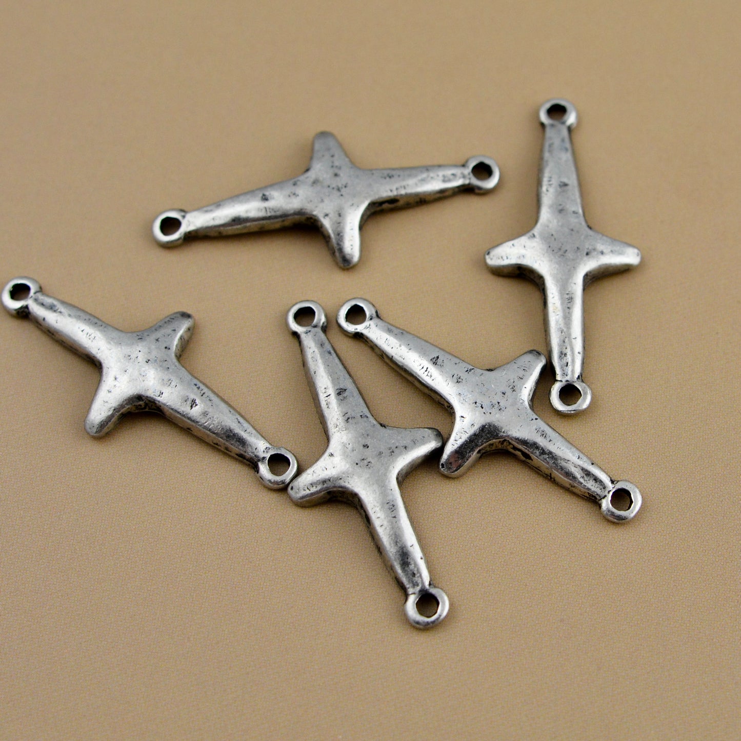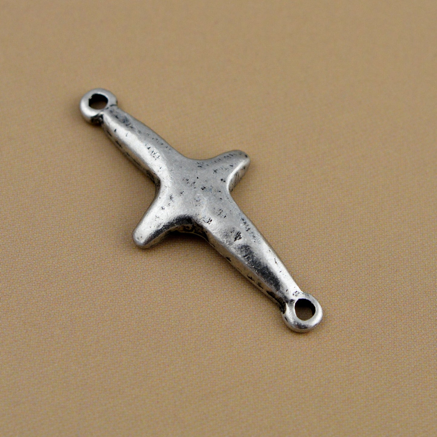 Twinkling Star Cross Connector, Silver Pewter Artisan Charm, Jewelry Making Supplies, PW-6351